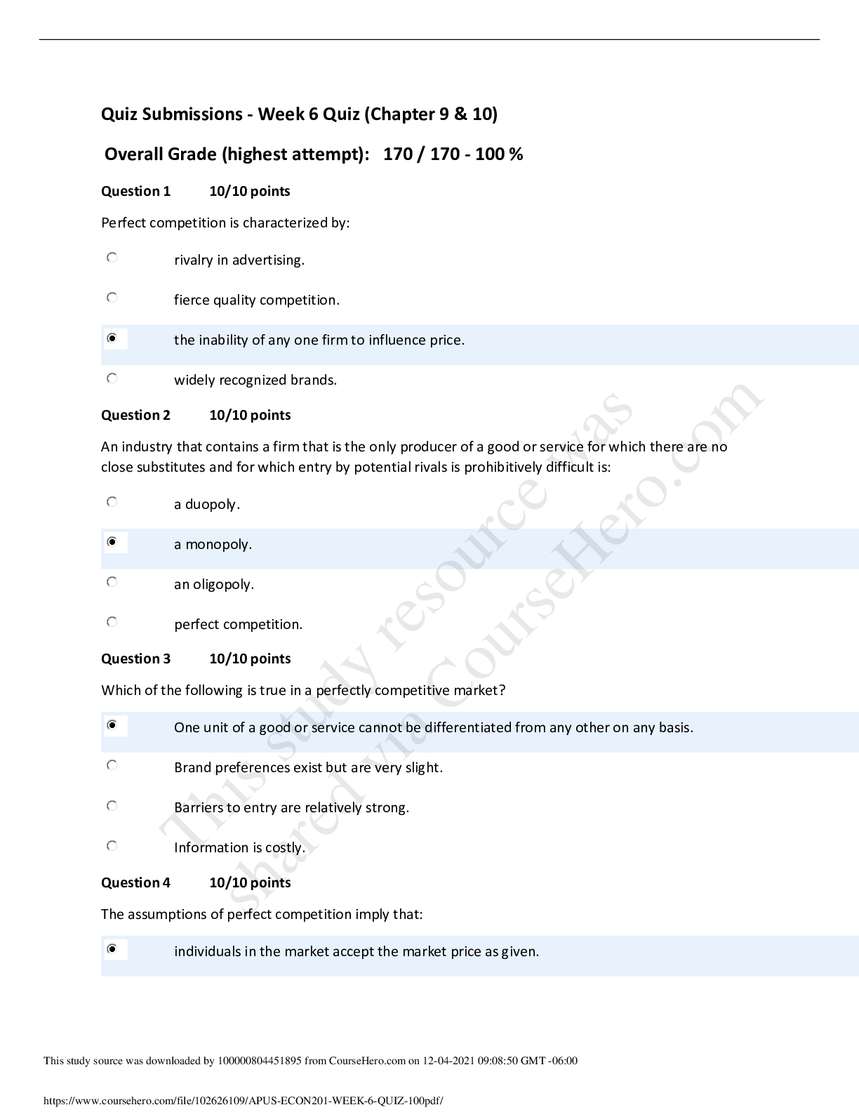 ECON 201APUS_ECON201_WEEK_6_QUIZ GRADED 100% (Latest 2021/2022)