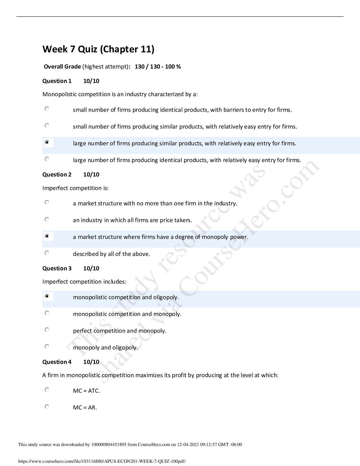 ECON 201APUS_ECON201_WEEK_7_QUIZ GRADED 100% (Latest 2021/2022)
