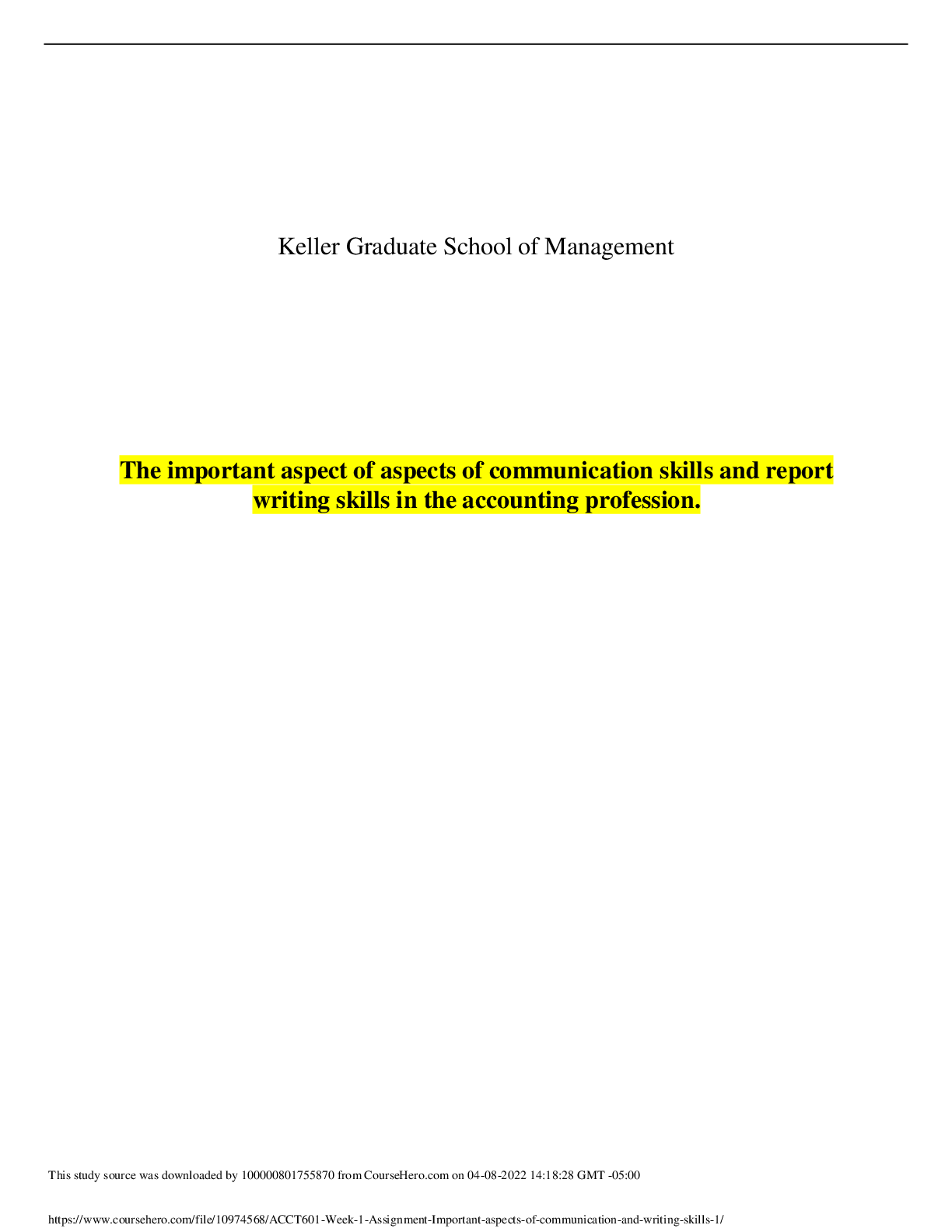 Financial Accounting> CASE STUDY > ACCT 601 Week 1 Written Assignment: Important aspects of communication and writing skills in Accounting (GRADED A) (All)