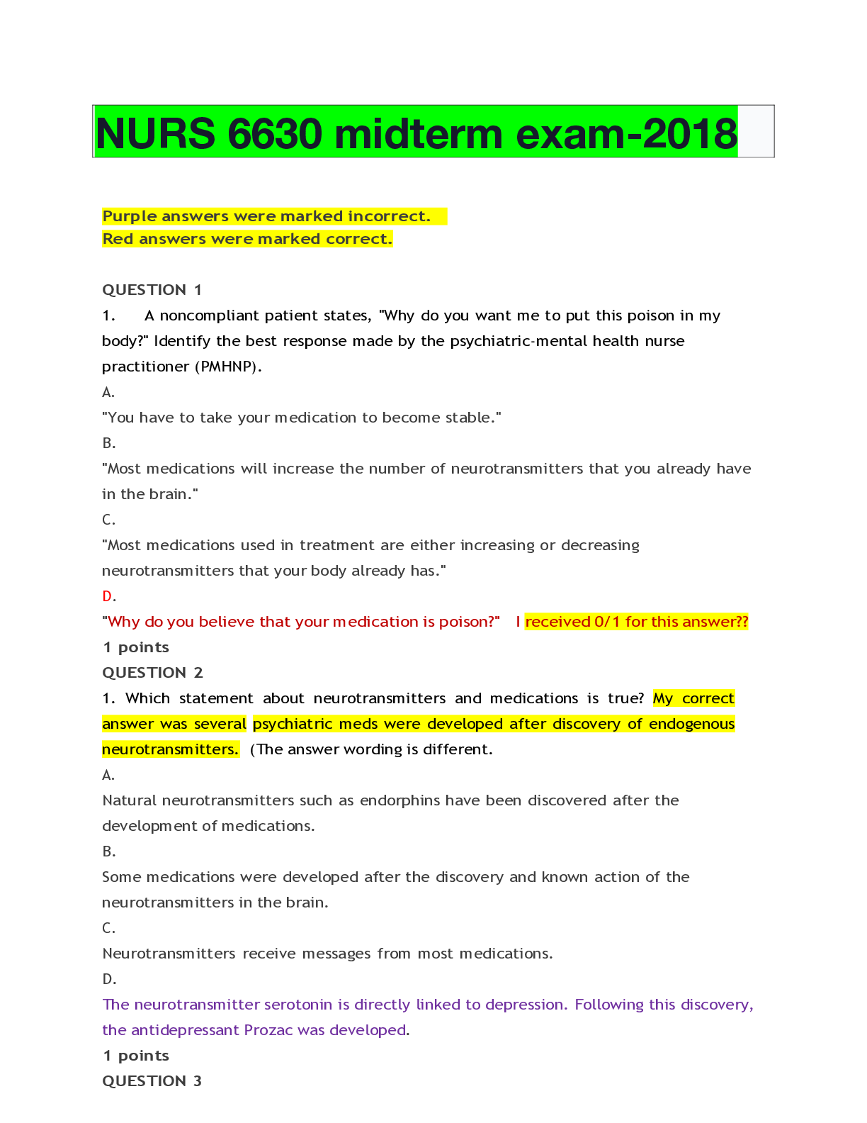 QUESTION 1 1. A noncompliant patient states, "Why do you want me to put this poison in my body?" Identify the best response made by the psychiatric-mental health nurse practitioner (PMHNP). A. "You...