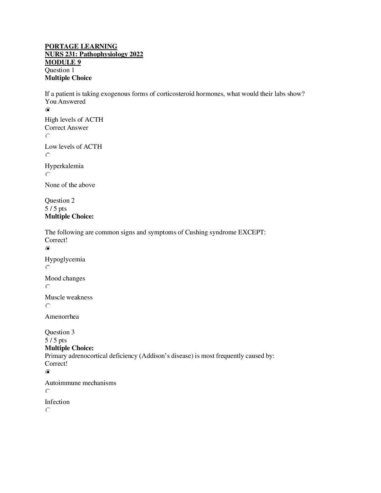 Health Care> EXAM > NURS 231 Module 9 Exam (All)
