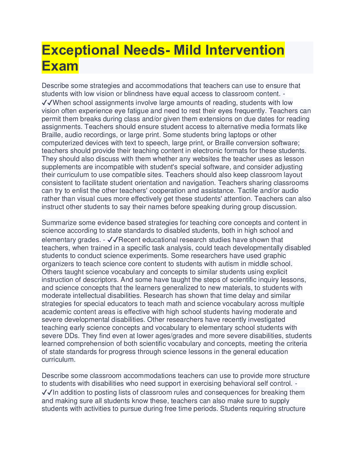 Health Care> EXAM > Exceptional Needs- Mild Intervention Exam | 100 Questions with 100% Correct Answers (All)