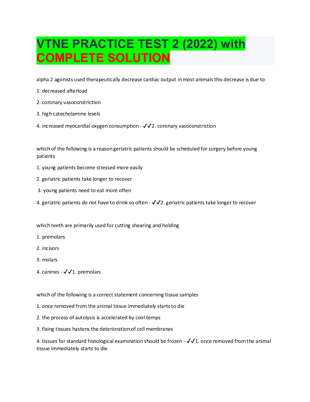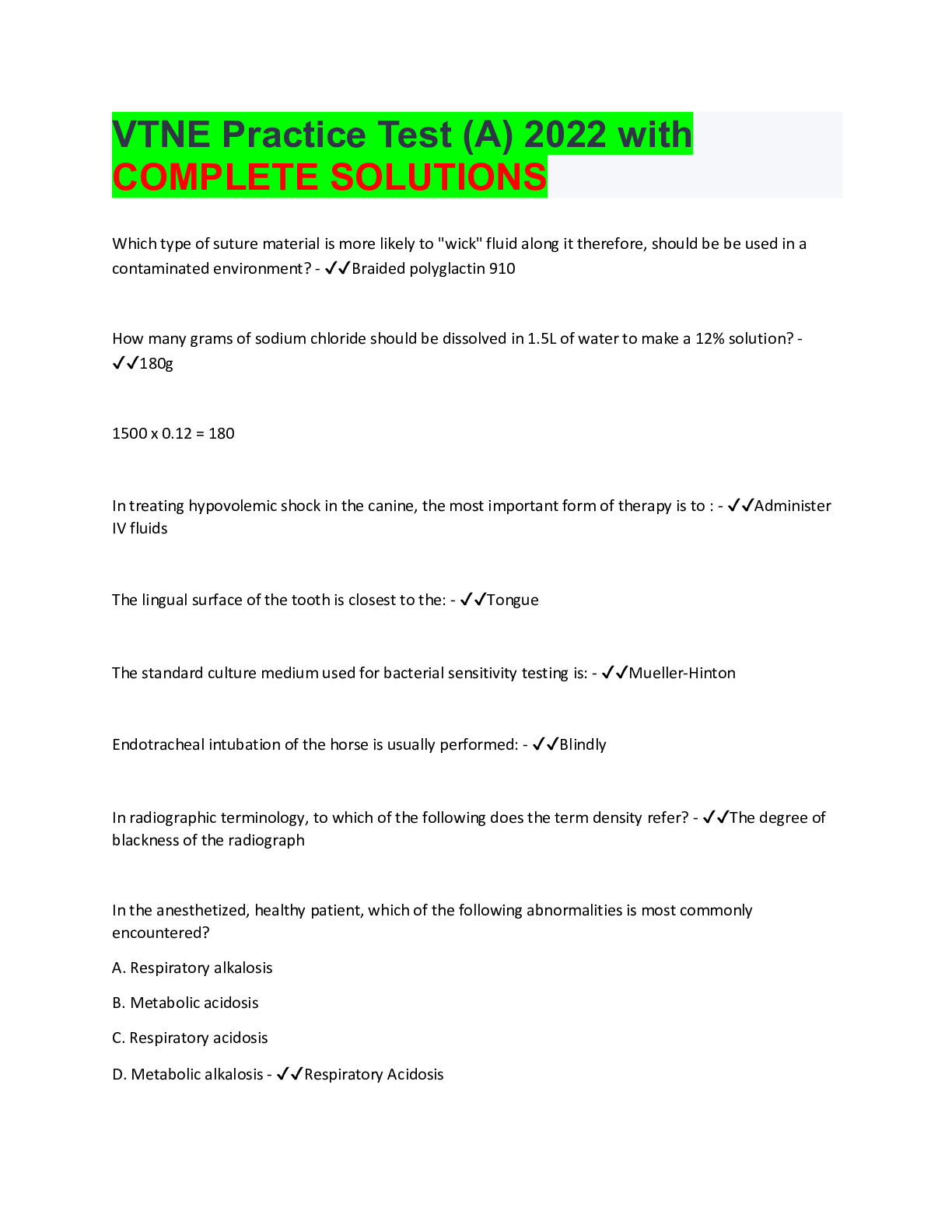 Veterinary Medicine> EXAM > VTNE Practice Test (A) 2022 with COMPLETE SOLUTION (All)