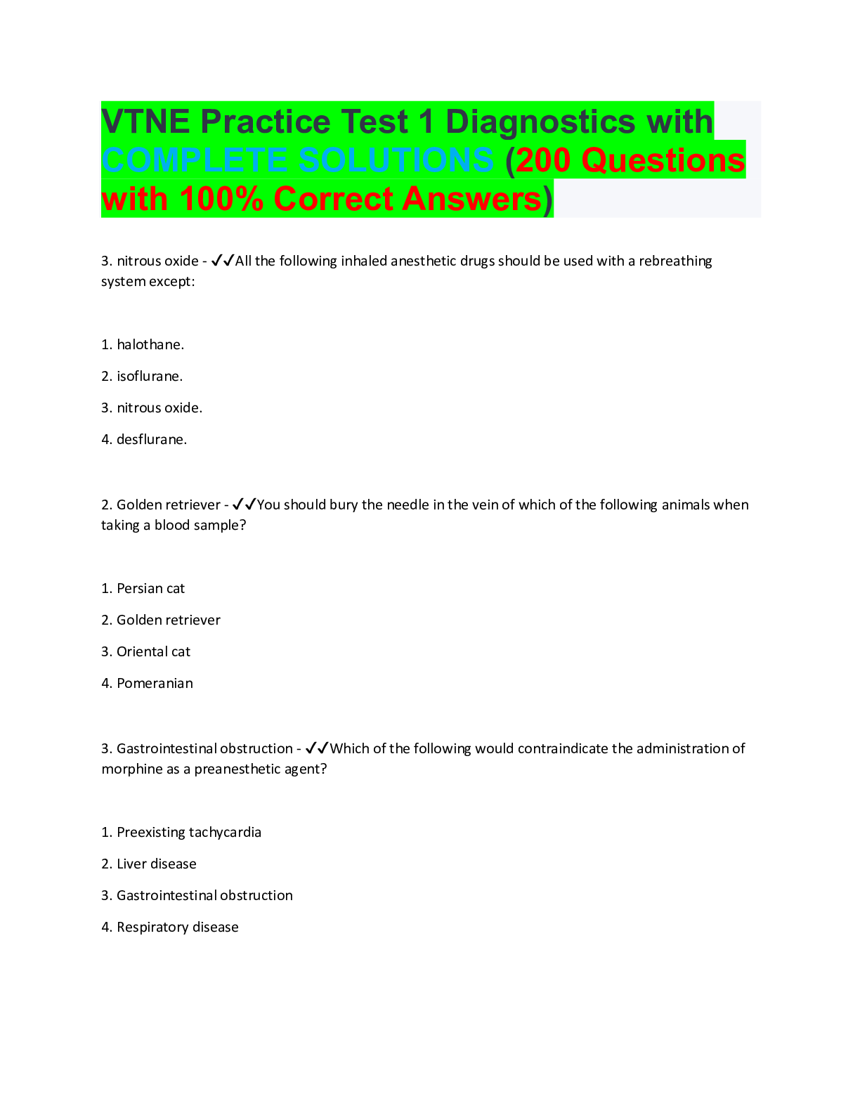 Nutrition> EXAM > VTNE Practice Test 1 Diagnostics with COMPLETE SOLUTIONS (200 Questions with 100% Correct Answers) (All)