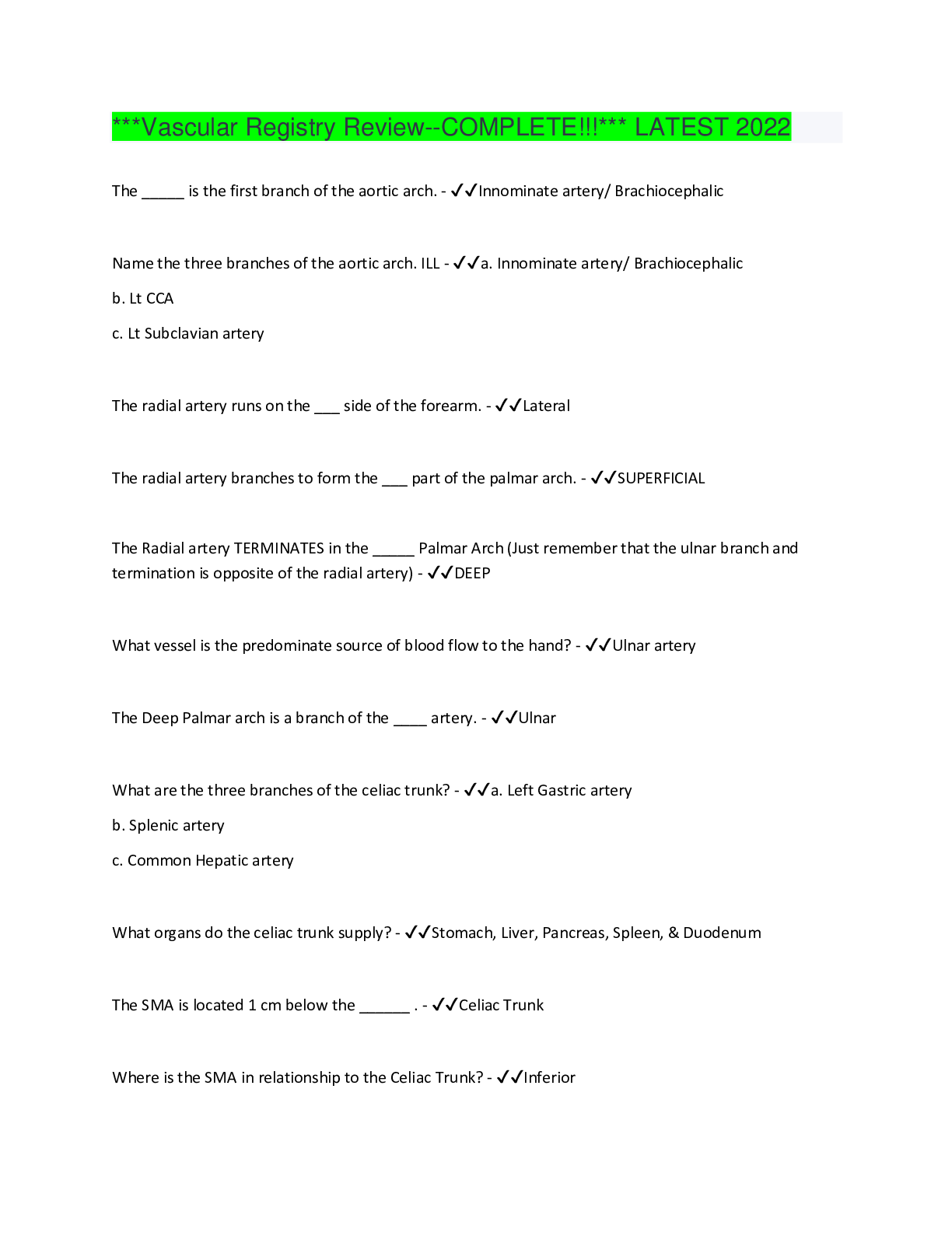 Health Care> EXAM > ***Vascular Registry Review--COMPLETE!!!*** LATEST 2022 (All)