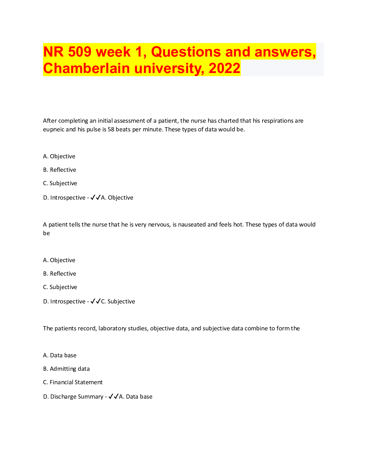 *NURSING> QUESTIONS & ANSWERS > NR 509 week 1, Questions and answers, Chamberlain university, 2022 (All)