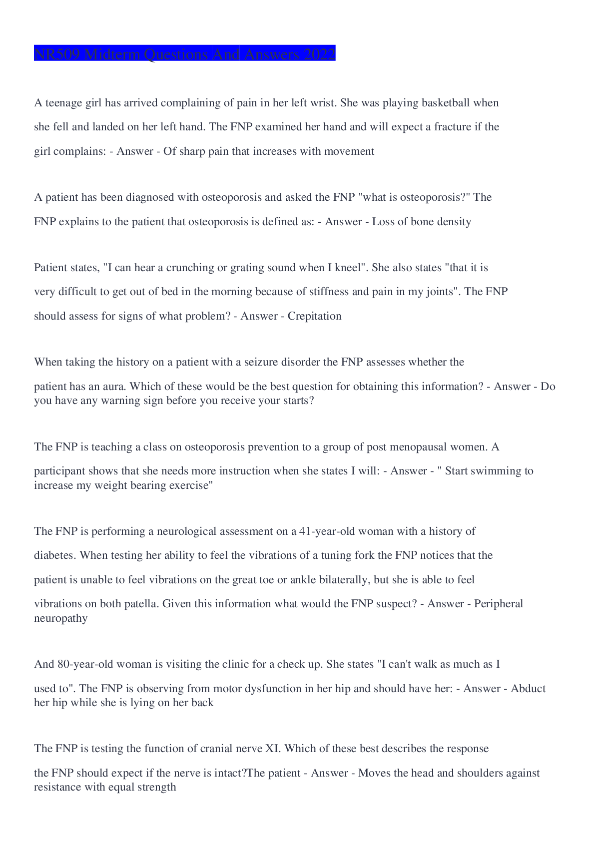 NR509 Midterm (Latest 2021 / 2022): Advanced Physical Assessment - Chamberlain A teenage girl has arrived complaining of pain in her left wrist. She was playing basketball when she fell and...