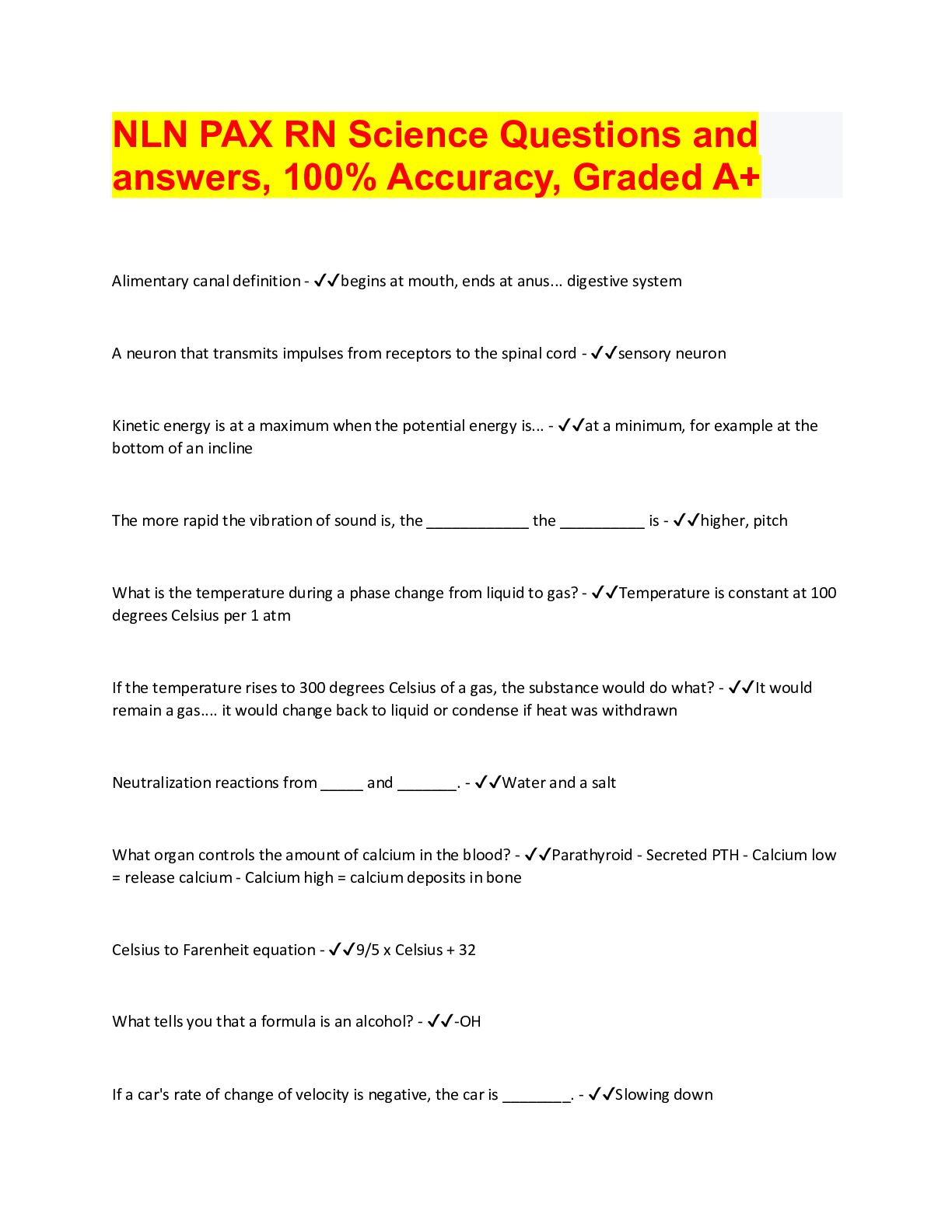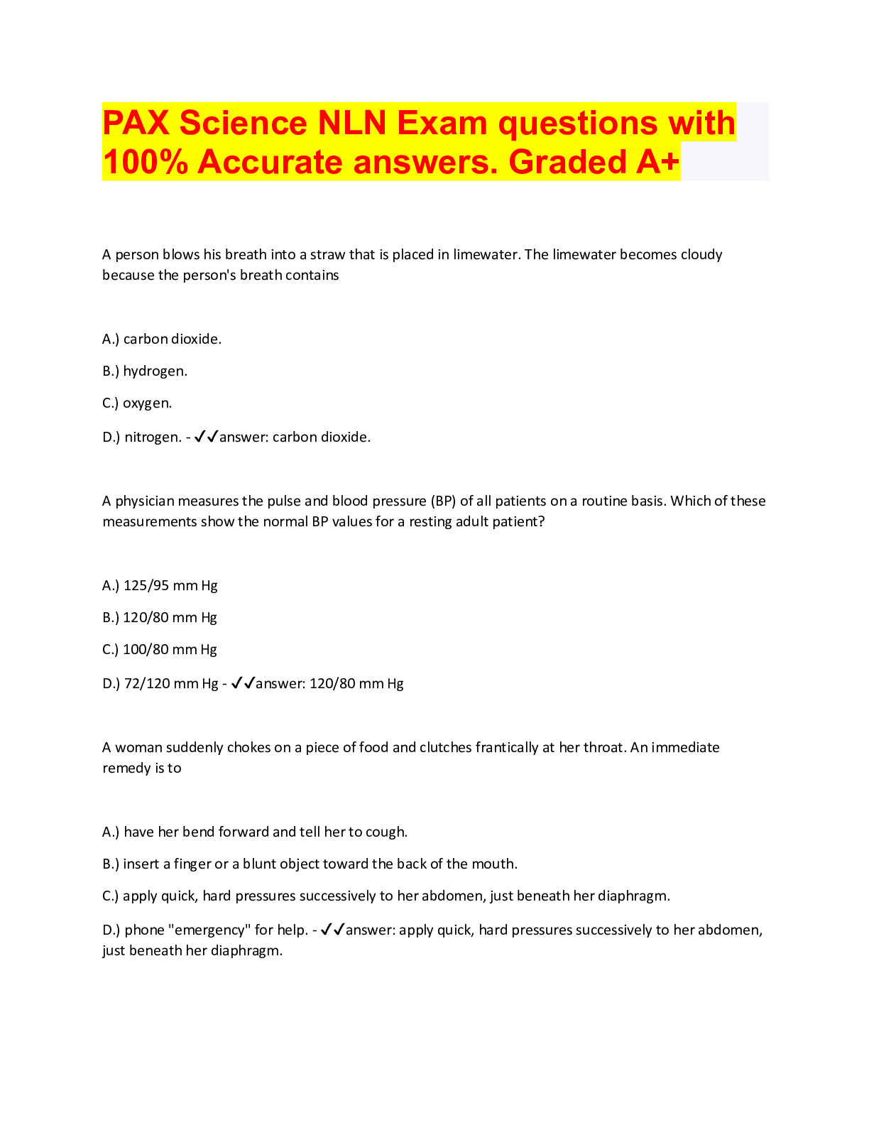 *NURSING> QUESTIONS & ANSWERS > PAX Science NLN Exam questions with 100% Accurate answers. Graded A+ (All)