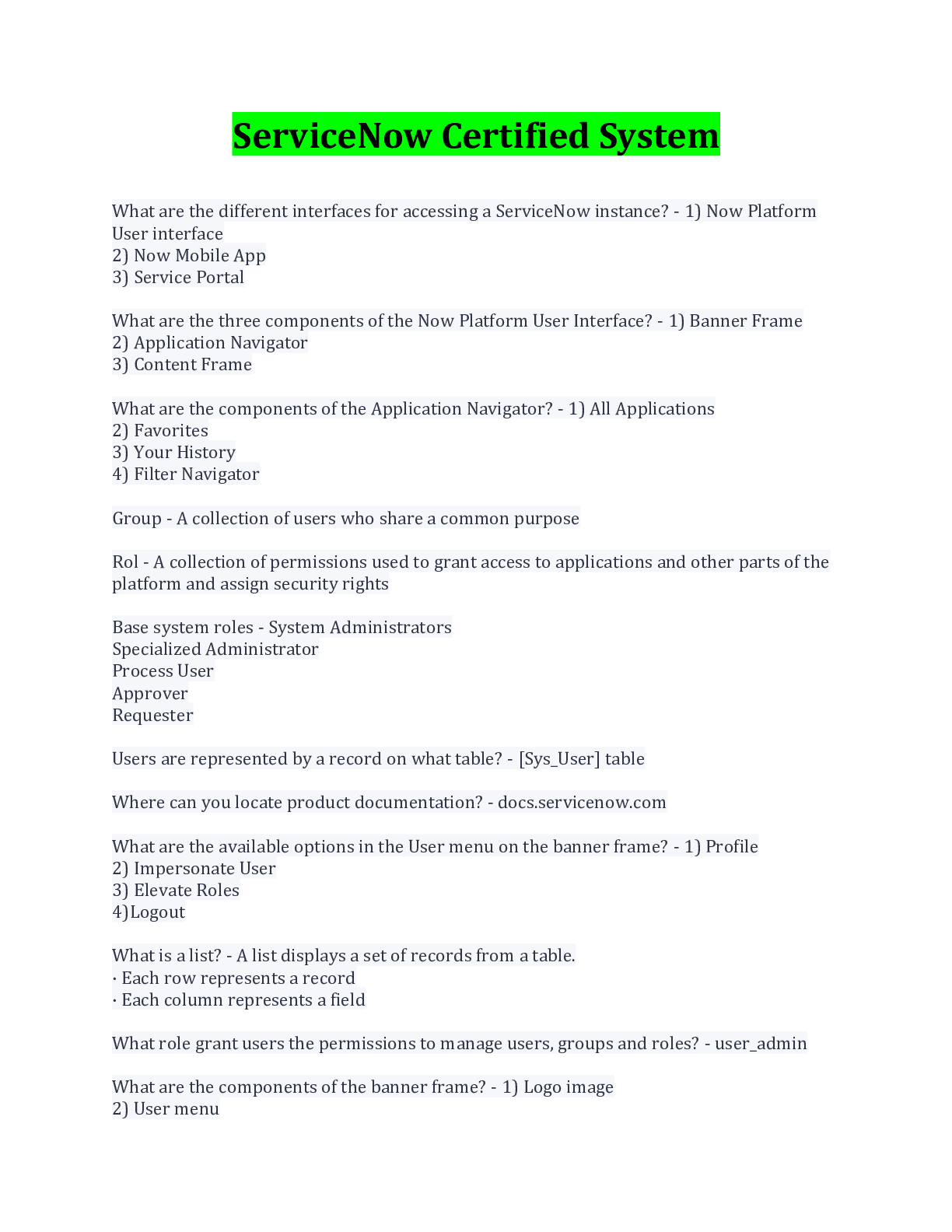 ServiceNow CSA Certification Study Questions And Answers( Download To Score An A