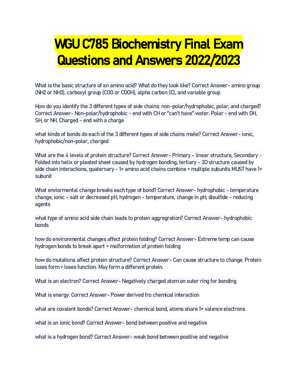 BioChemistry> EXAM > WGU C785 Biochemistry Final Exam 2022/2023 Graded A+ (All)