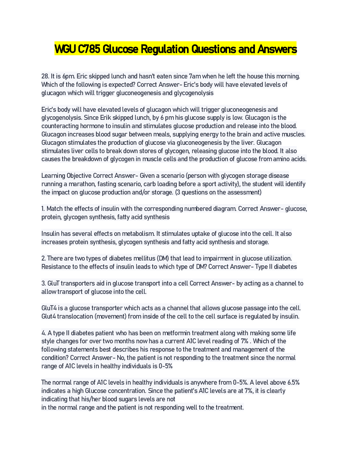 *NURSING> EXAM > WGU C785 Glucose Regulation Questions and Answers (All)