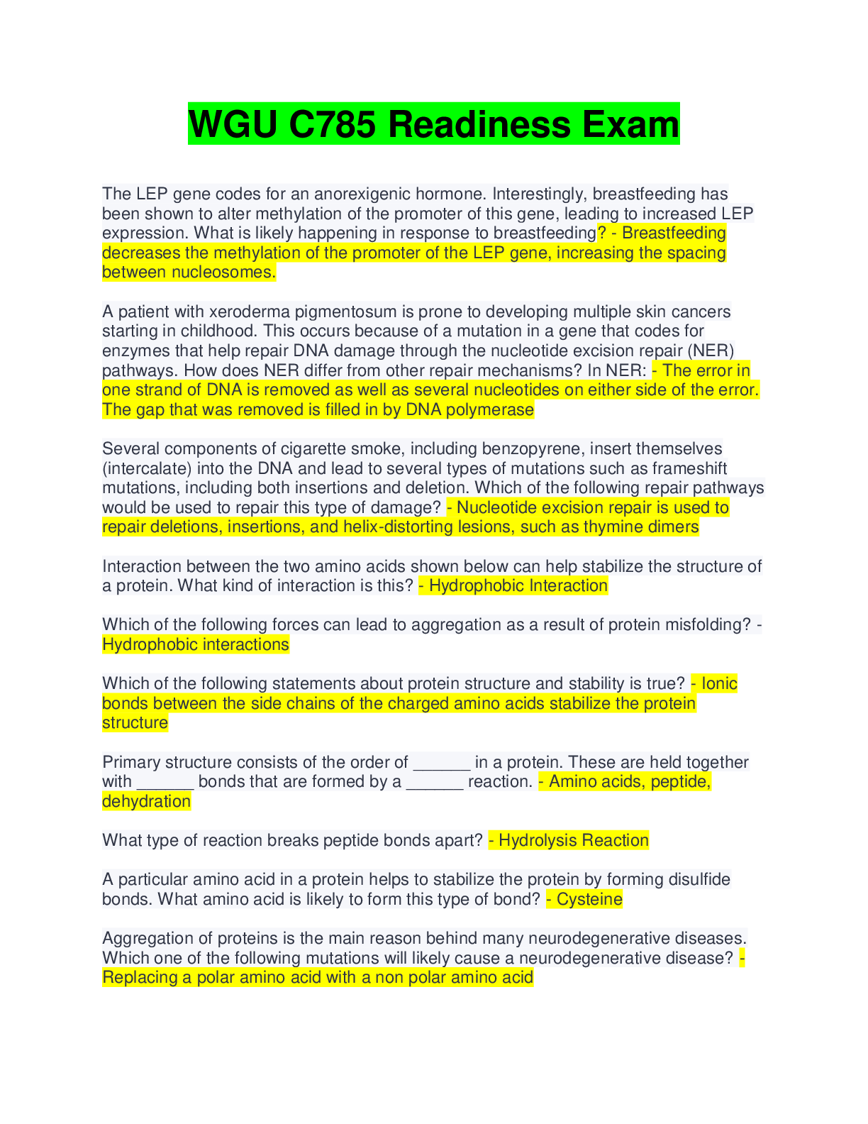 *NURSING> EXAM > WGU C785 Protein Folding Exam Questions with Answers (All)