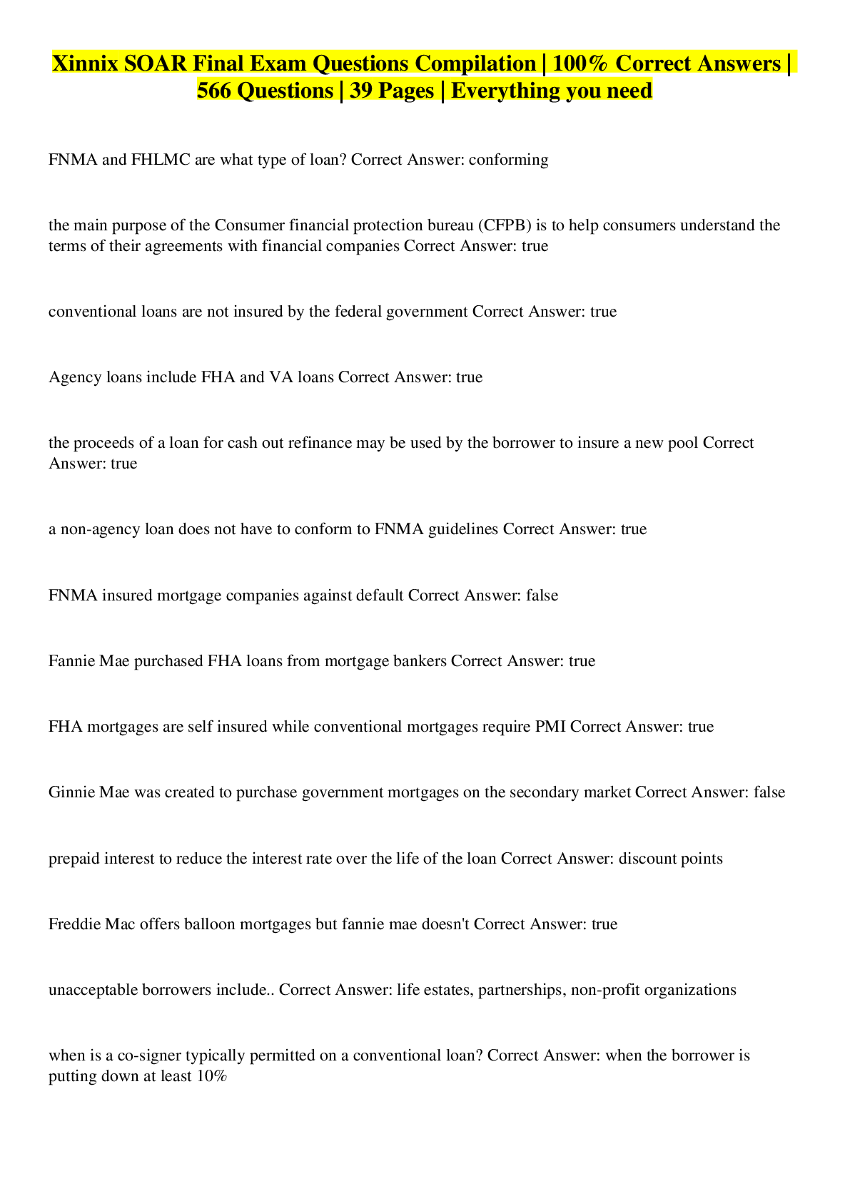 Business> EXAM > Xinnix Ground School Mortgage Final Exam | 55 Questions with 100% Correct Answers (All)