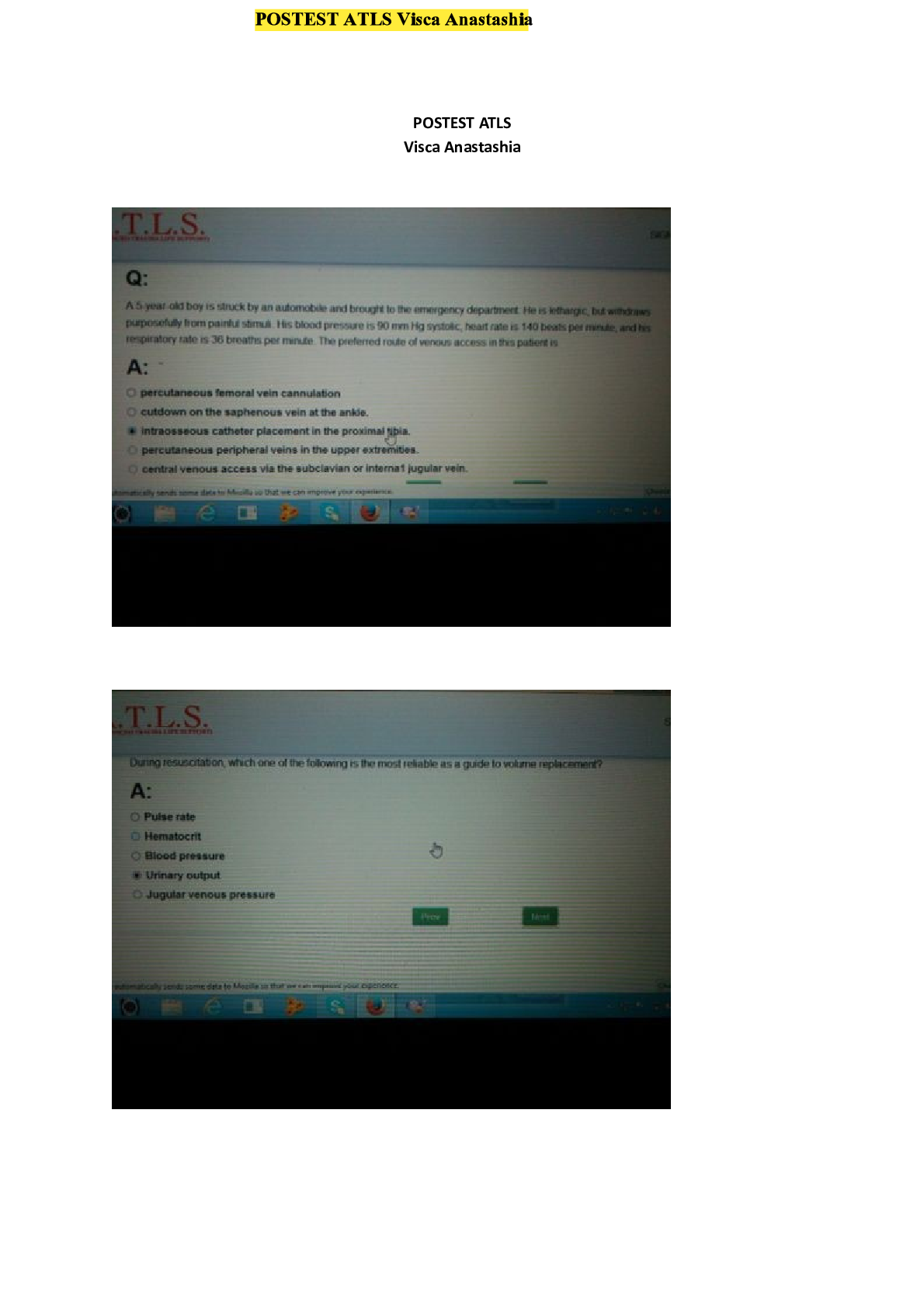 Health Care> EXAM > ATLS PRETest Questions And Verified Answers (All)