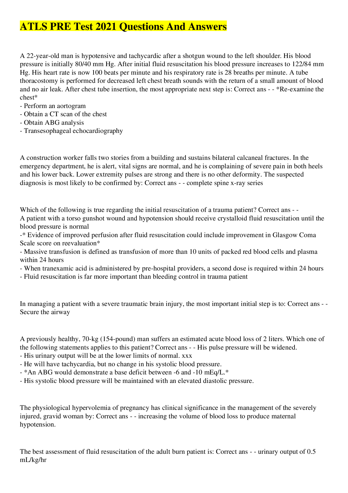 POSTEST ATLS 2021 - QUESTIONS AND ANSWERS