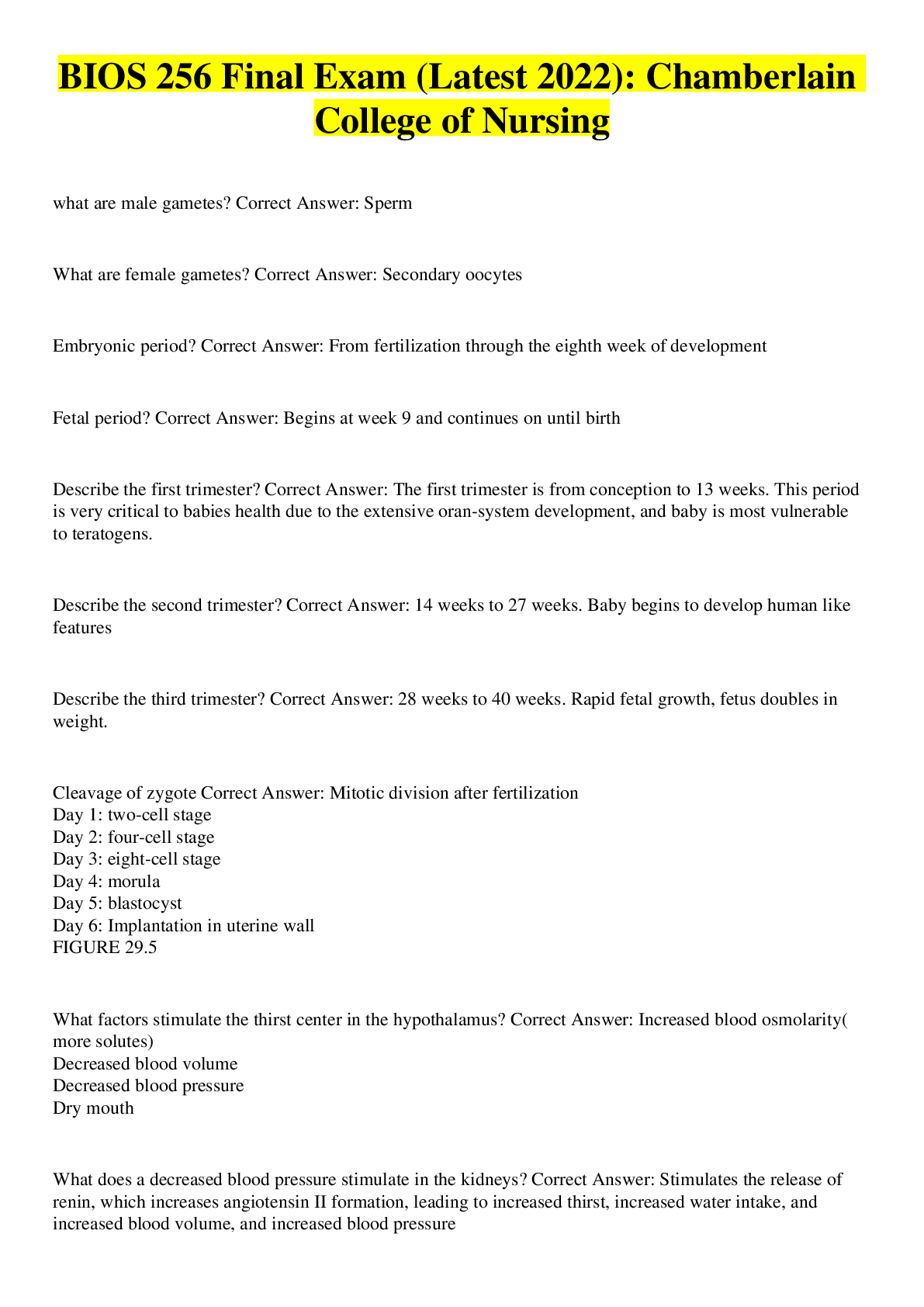 Health Care> EXAM > BIOS 256 Final Exam (Latest 2022): Chamberlain College of Nursing (All)