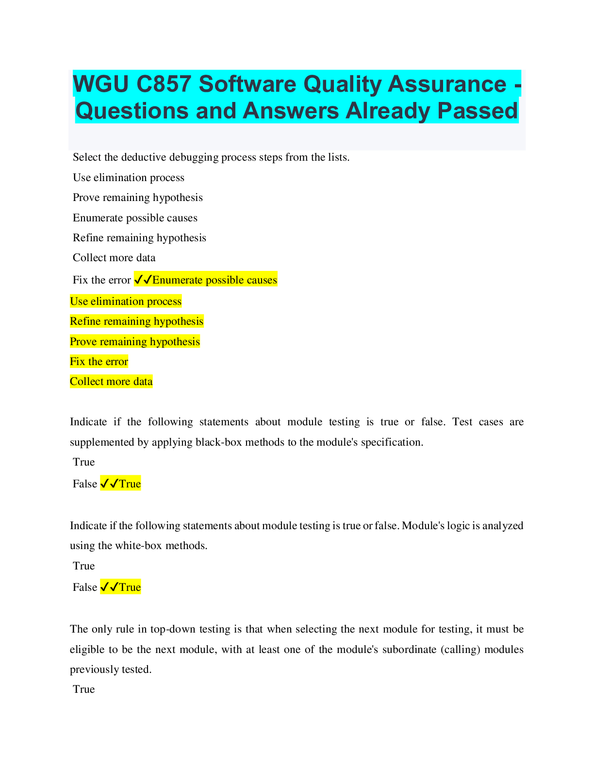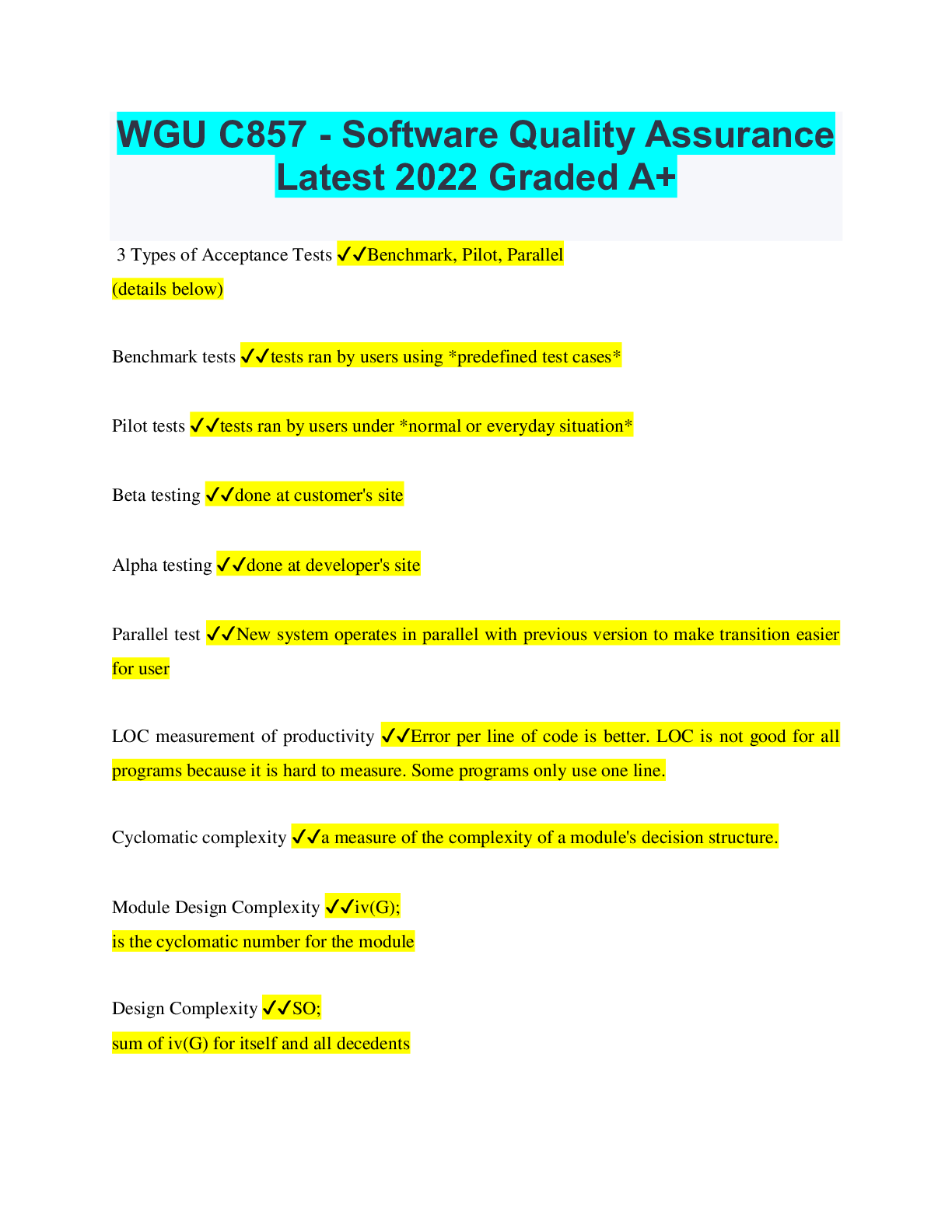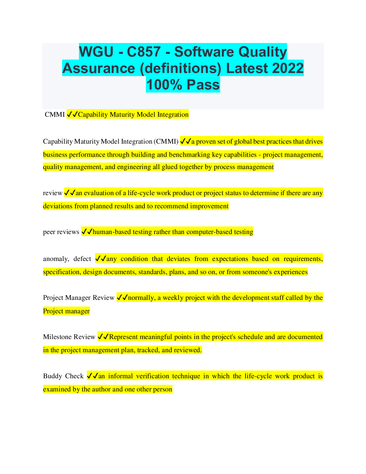 Bundle for WGU C857 - Software Quality Assurance Tests | Updated & Verified | Everything you need to Pass!!... [Show More]