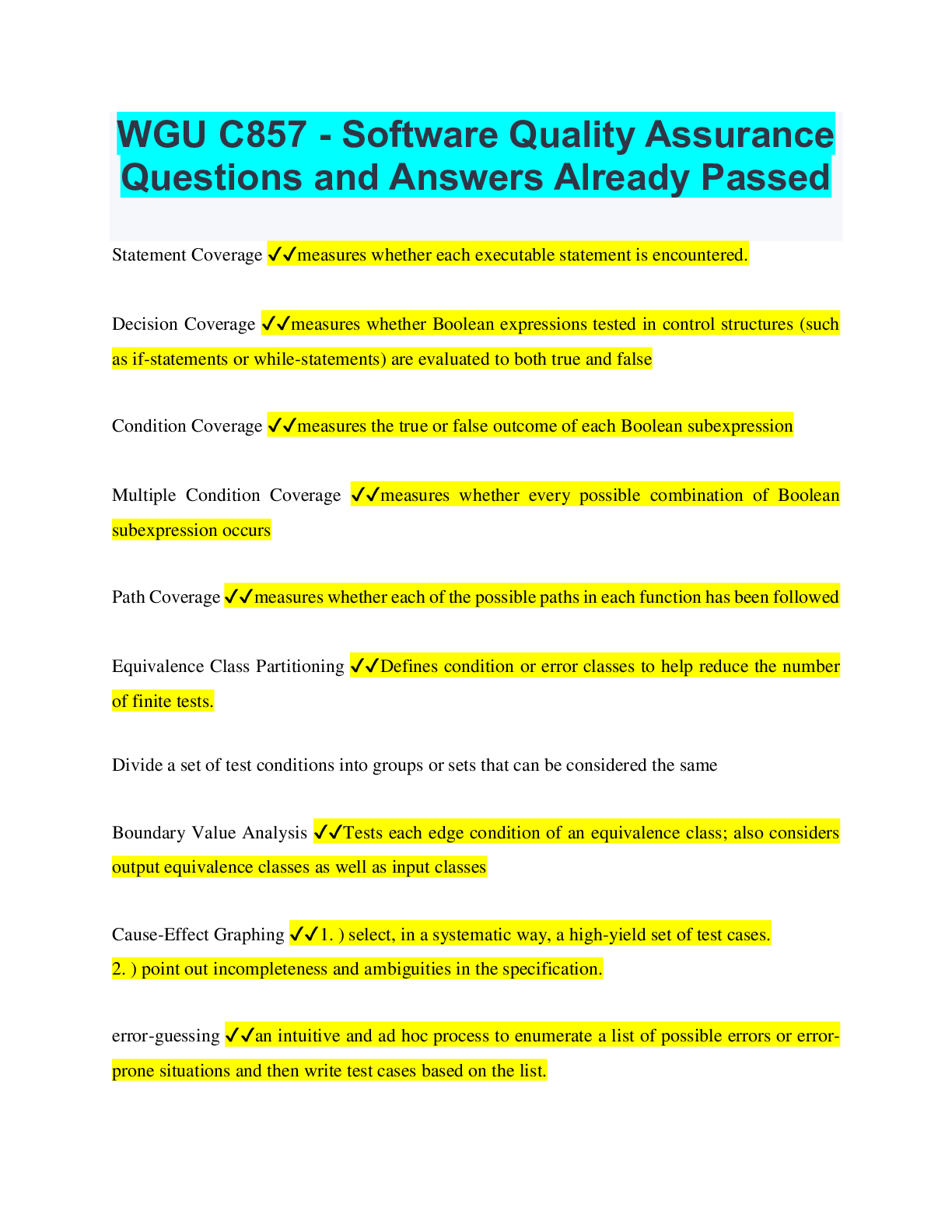 Information Technology> EXAM > WGU C857 Software Quality Assurance - Study Guide (All)