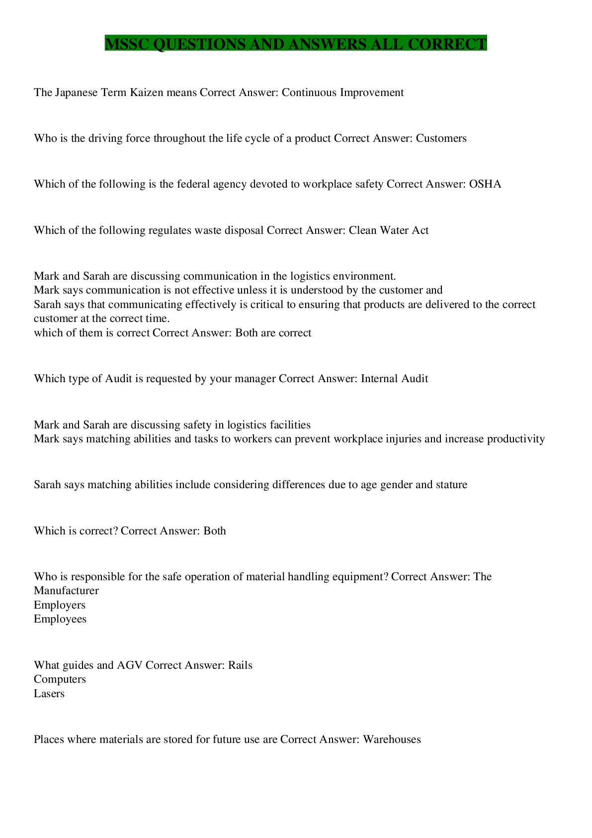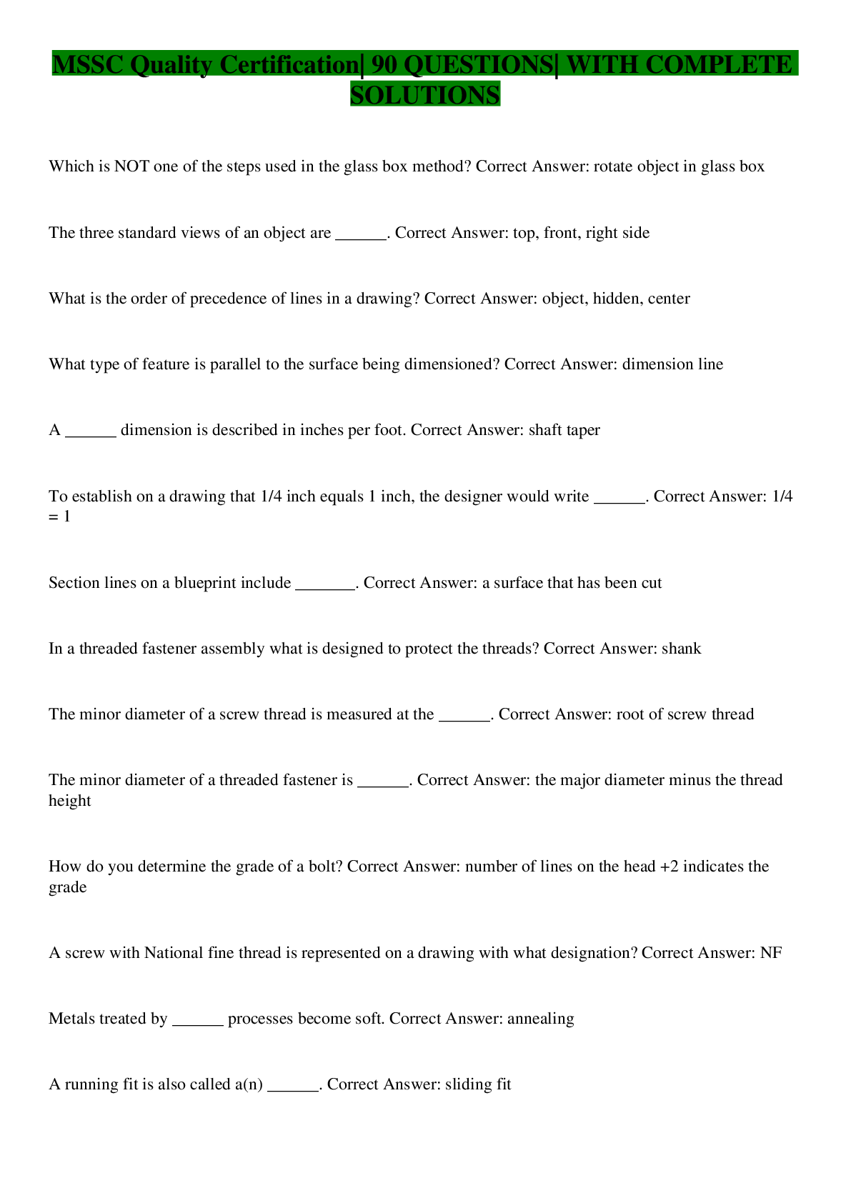 Business> EXAM > Mssc Quality Study 80 Questions WITH COMPLETE SOLUTIONS (All)