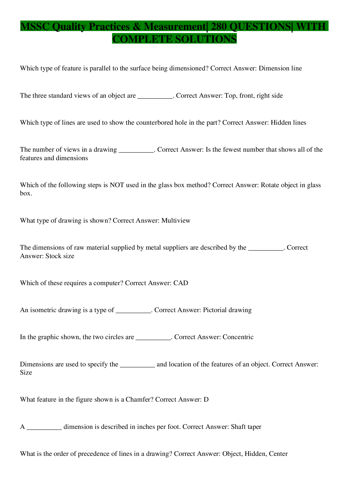 Business> EXAM > MSSC Quality Practices & Measurement| 280 QUESTIONS| WITH COMPLETE SOLUTIONS (All)
