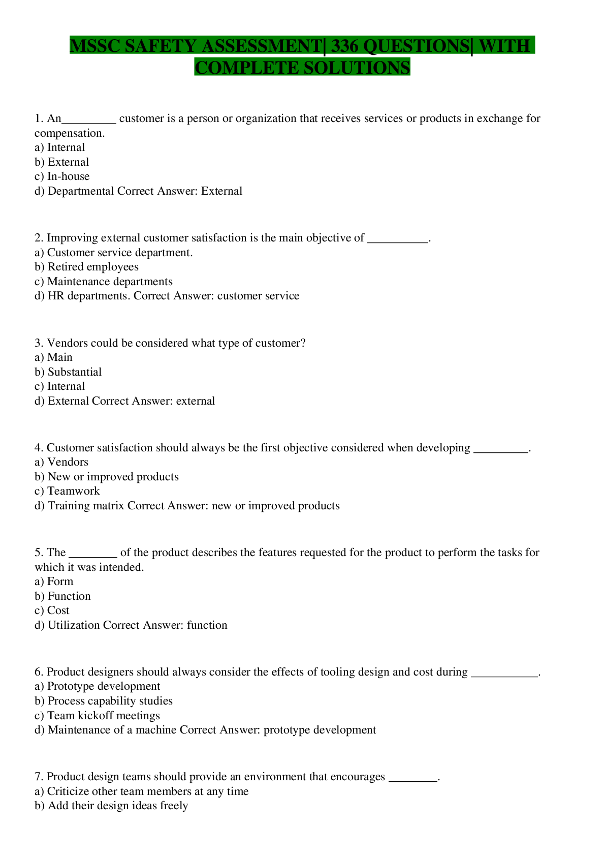 Business> EXAM > MSSC SAFETY ASSESSMENT| 336 QUESTIONS| WITH COMPLETE SOLUTIONS (All)