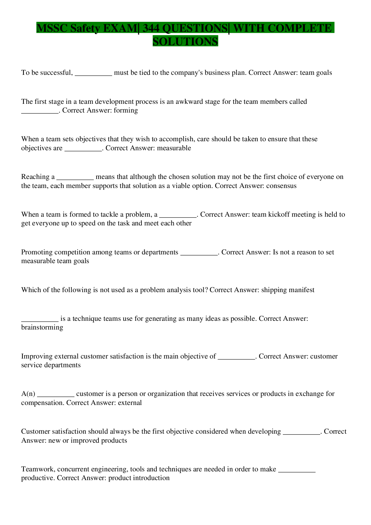 Business> EXAM > MSSC Safety EXAM| 344 QUESTIONS| WITH COMPLETE SOLUTIONS (All)