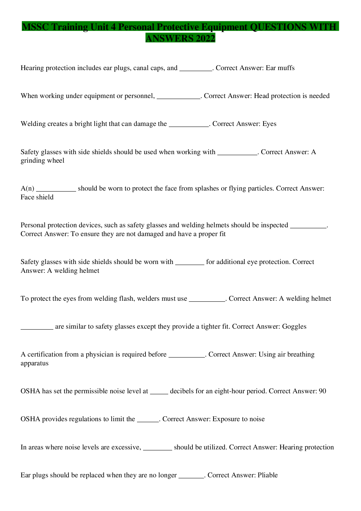 Business> EXAM > MSSC Training Unit 4 Personal Protective Equipment QUESTIONS WITH ANSWERS 2022 (All)