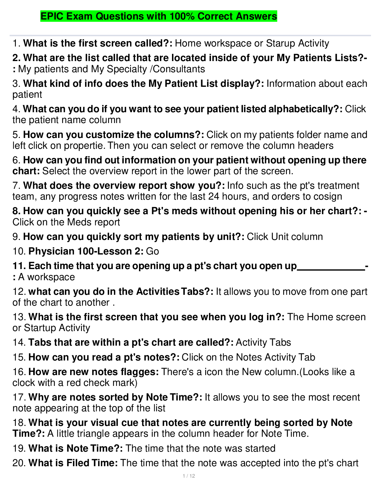 *NURSING> QUESTIONS & ANSWERS > EPIC Exam Questions with 100% Correct Answers (All)
