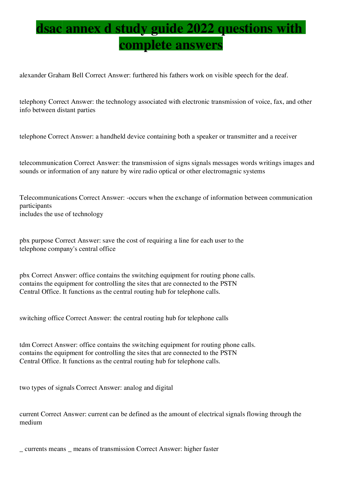 Computer Science> EXAM > dsac annex d study guide 2022 questions with complete answers (All)