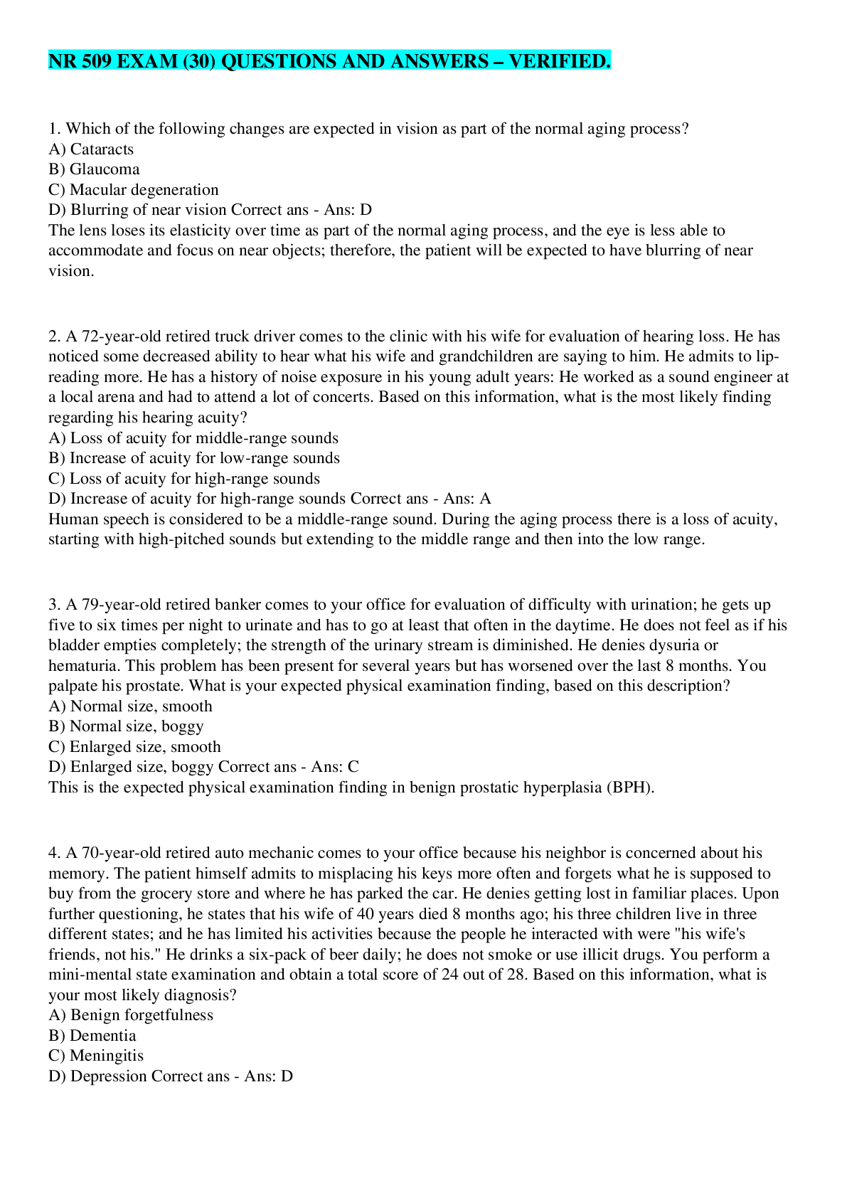 NR 509 EXAM (30) QUESTIONS AND ANSWERS – VERIFIED.