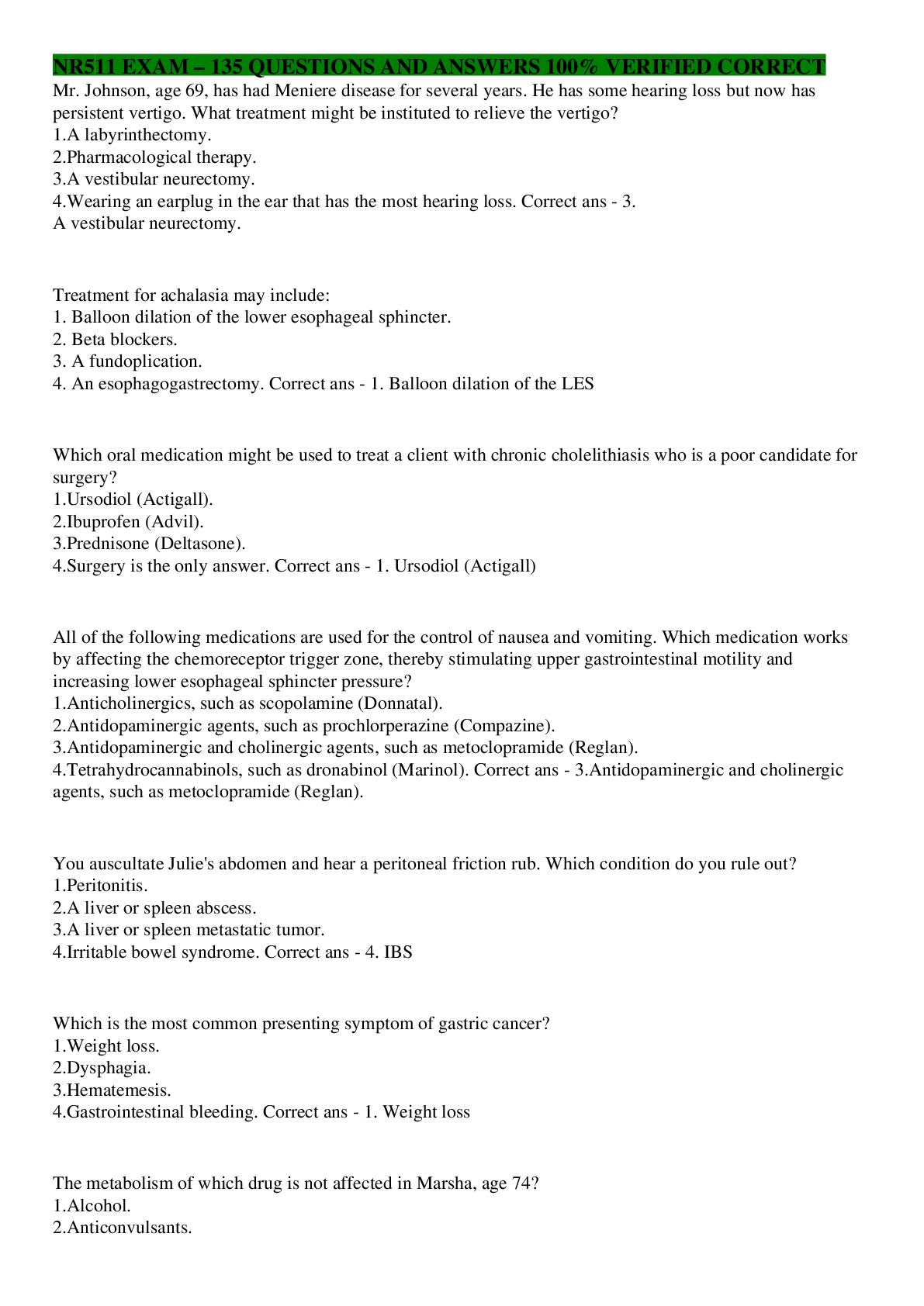 NR511 EXAM – 135 QUESTIONS AND ANSWERS 100% VERIFIED CORRECT