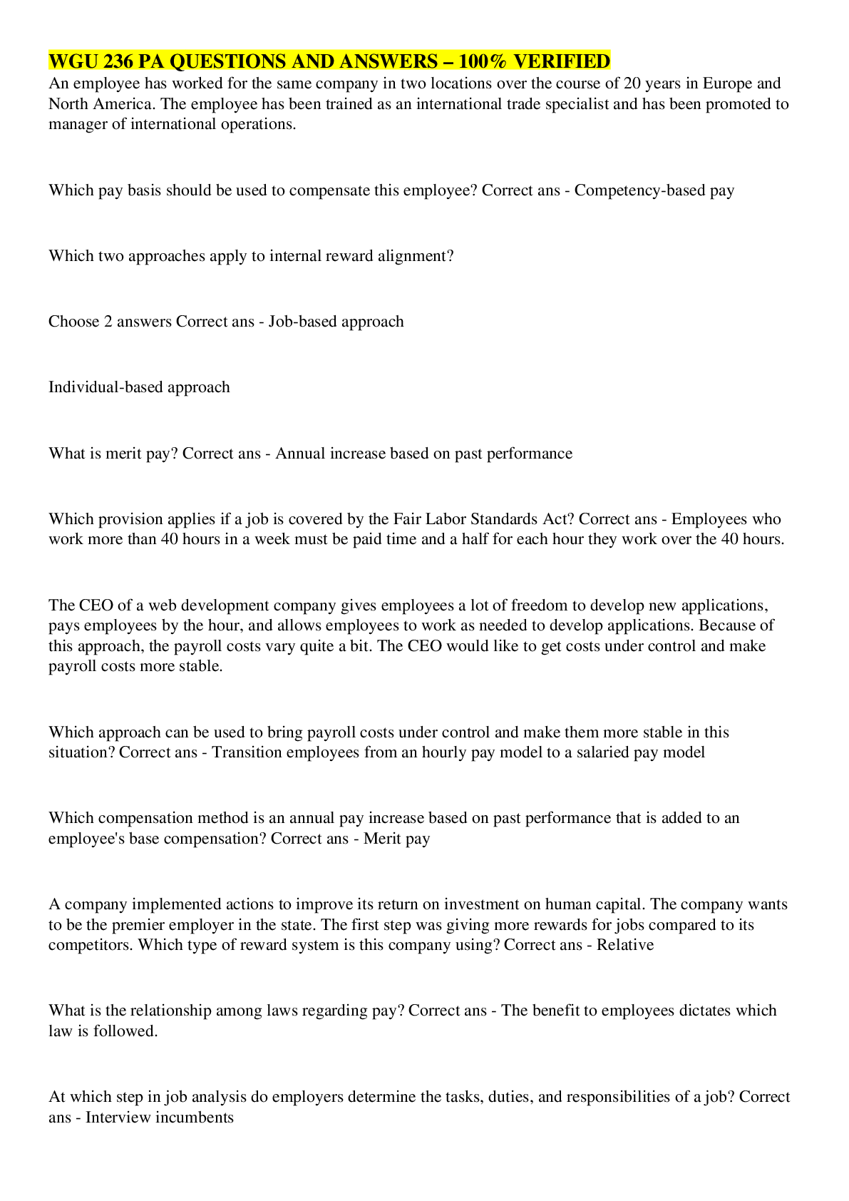 Health Care> EXAM > WGU C236 Compensation and Benefits – Test Questions And Answers (All)