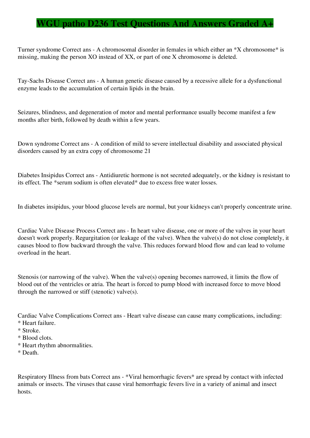 Health Care> EXAM > WGU patho D236 Test Questions And Answers Graded A+ (All)