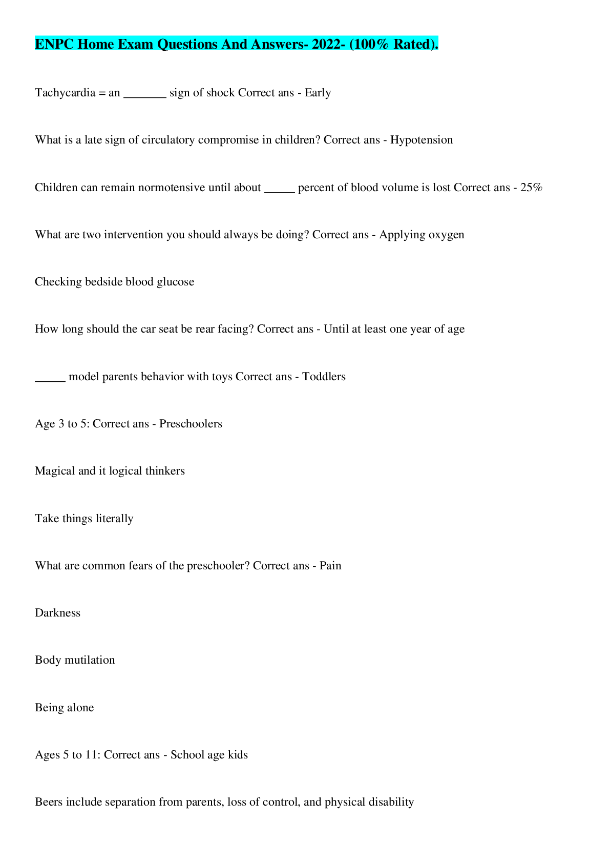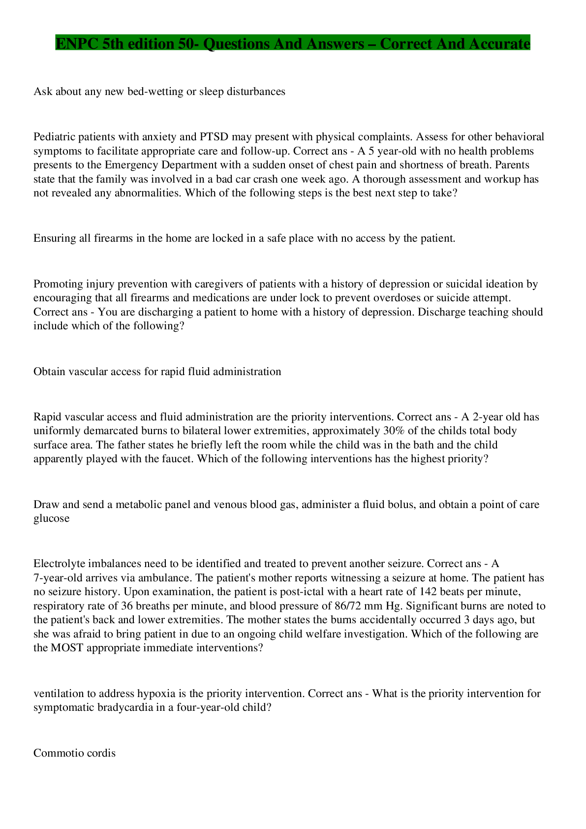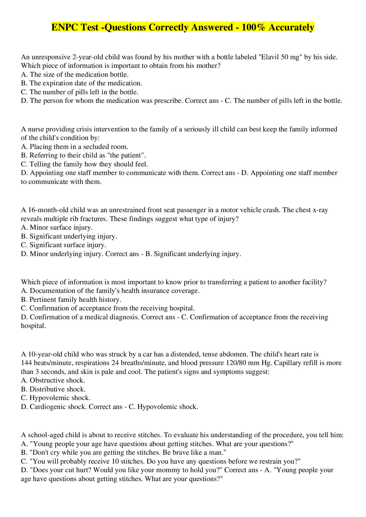 Health Care> EXAM > ENPC Test -Questions Correctly Answered - 100% Accurately (All)