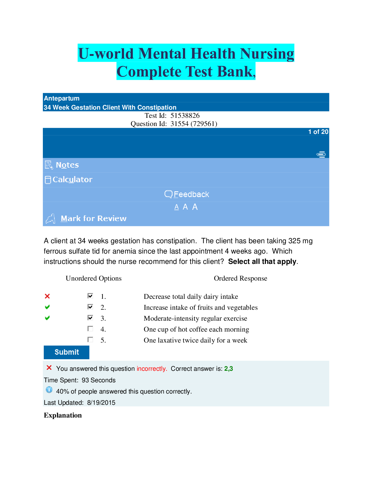 Uworld Mental Health Nursing LATEST VERSION.//////Uworld Mental Health Nursing LATEST VERSION.///////Uworld Mental Health Nursing LATEST VERSION.