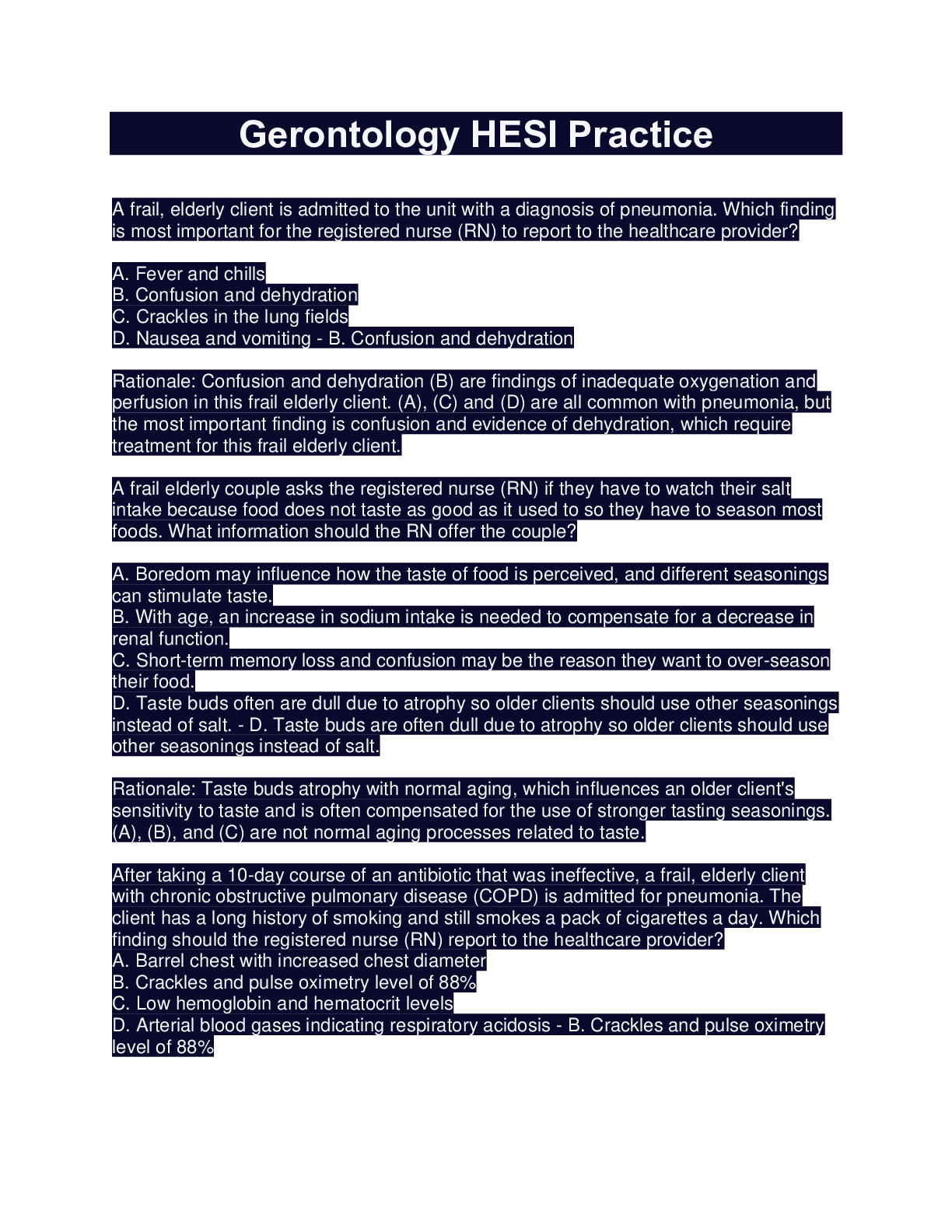 HESI PN Gerontology Practice Exam Questions And Answers