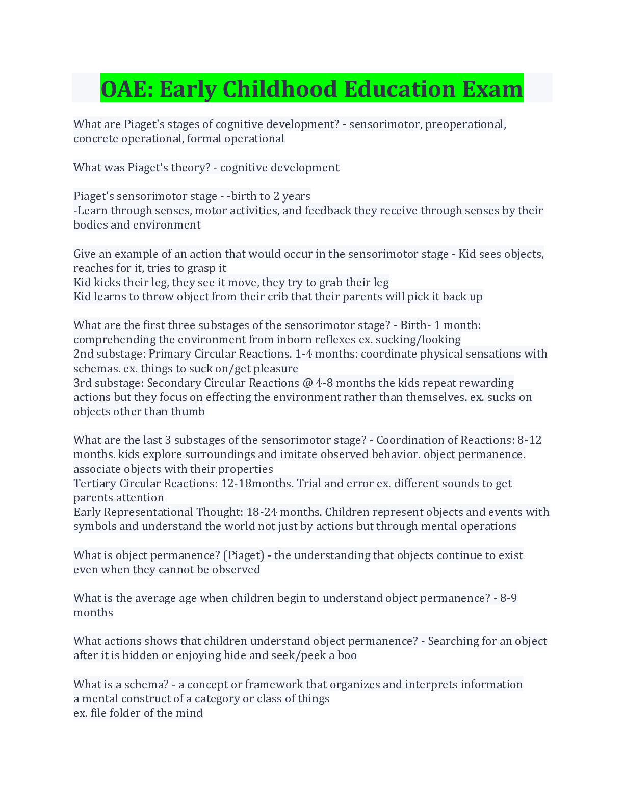 OAE: Early Childhood Education Exam Bundle... [Show More]