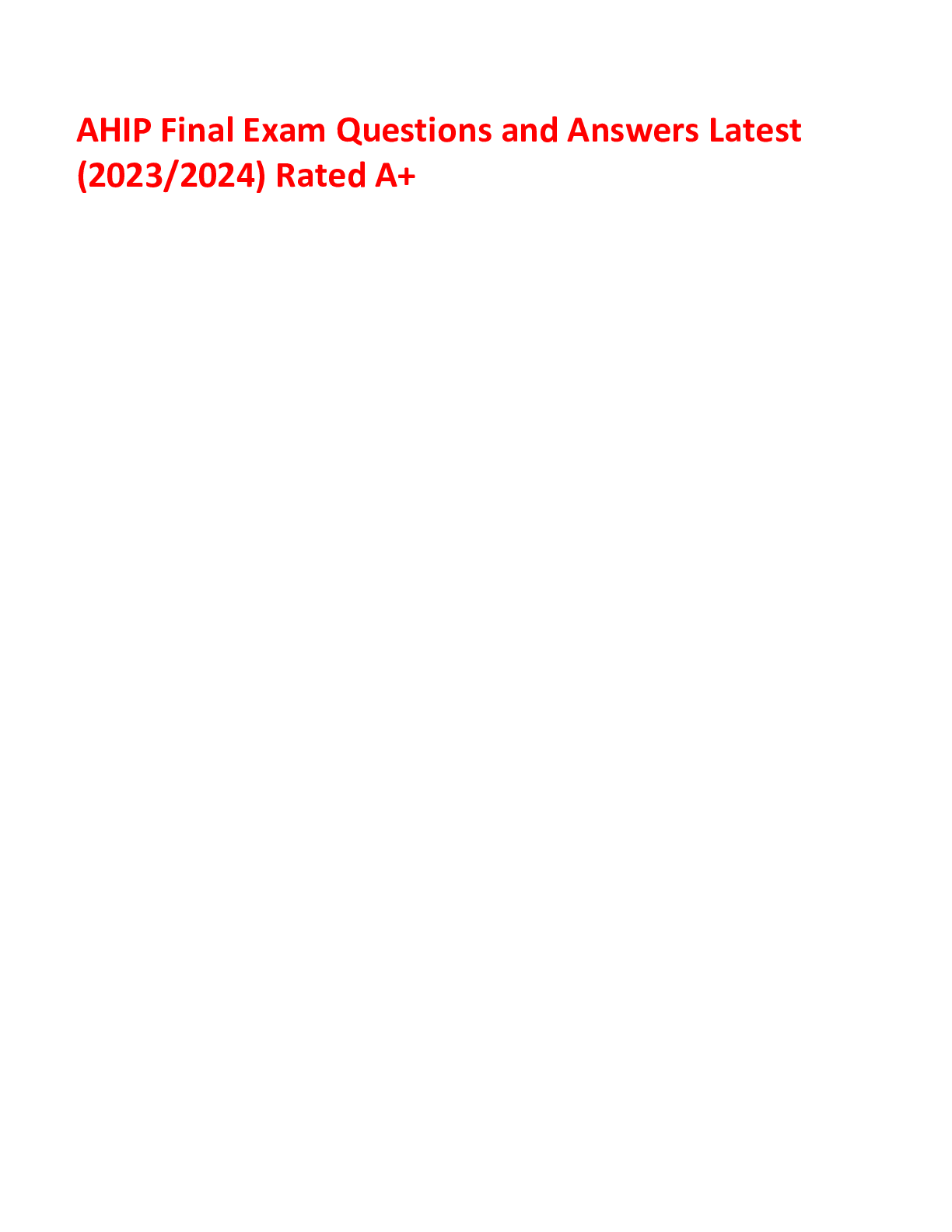 Health Care> EXAM > AHIP Final Exam Questions and Answers Latest (2023/2024) Rated A+ (All)