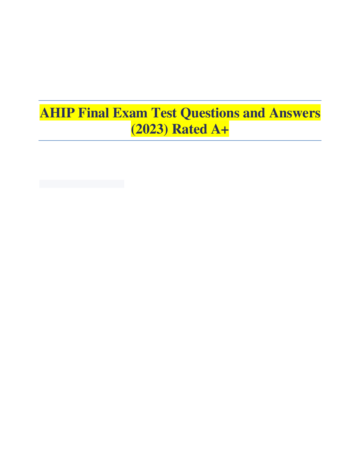 Health Care> EXAM > AHIP Final Exam Test Questions and Answers (2023) Rated A+ (All)