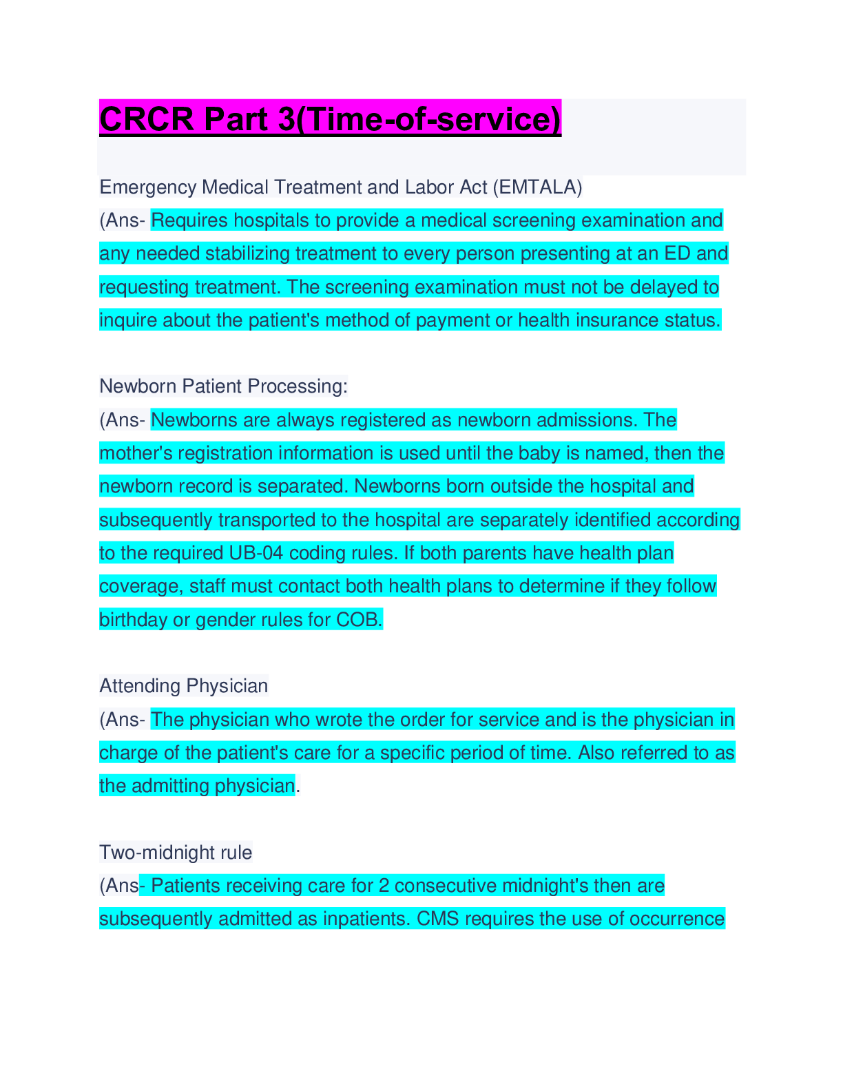 Health Care> EXAM > CRCR Part 3(Time-of-service): Latest Updated Solution (All)