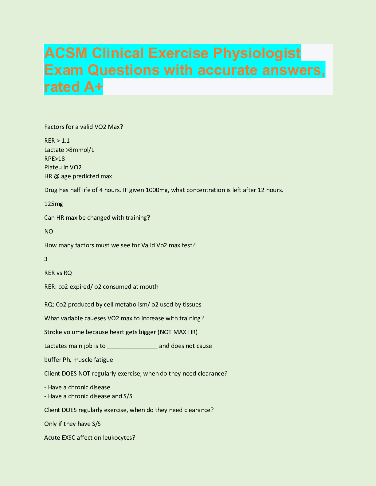 *NURSING> QUESTIONS & ANSWERS > ACSM Certified Exercise Physiologist, Questions with accurate answers, 100% Accurate, rated A+ (All)