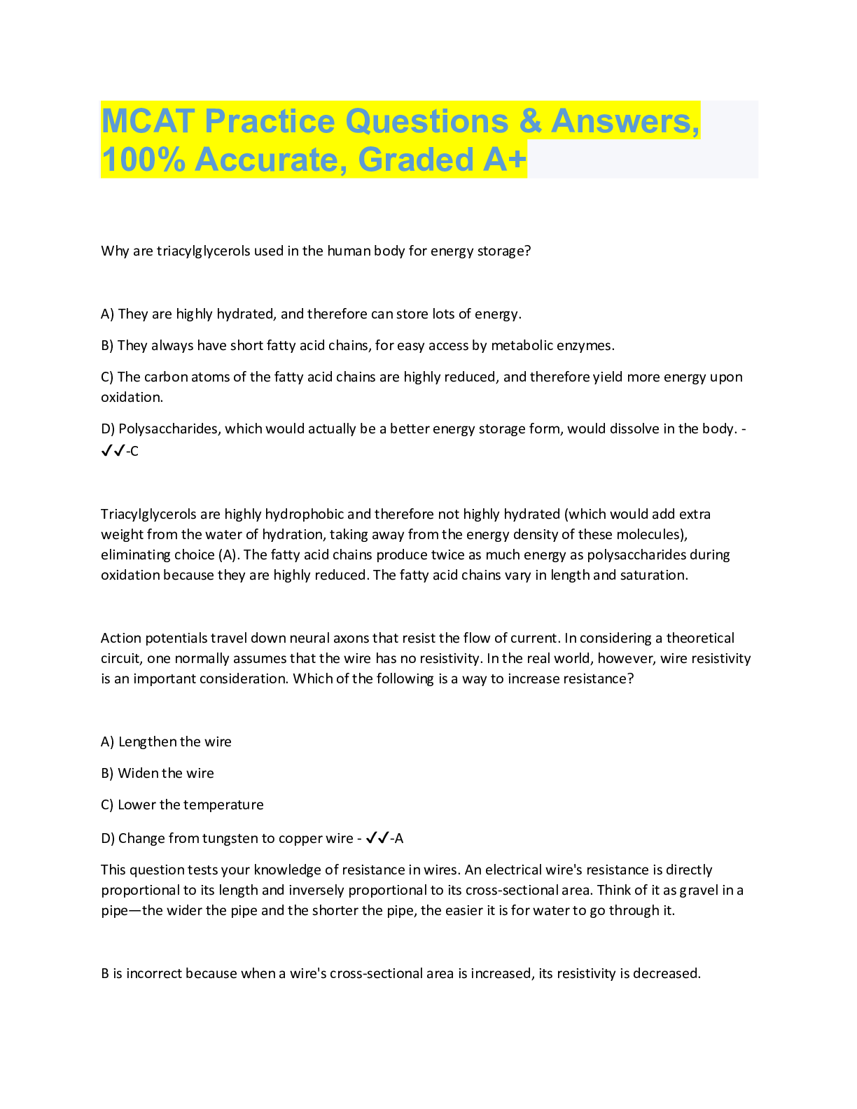 Biology> QUESTIONS & ANSWERS > MCAT Practice Questions & Answers, 100% Accurate, Graded A+ (All)