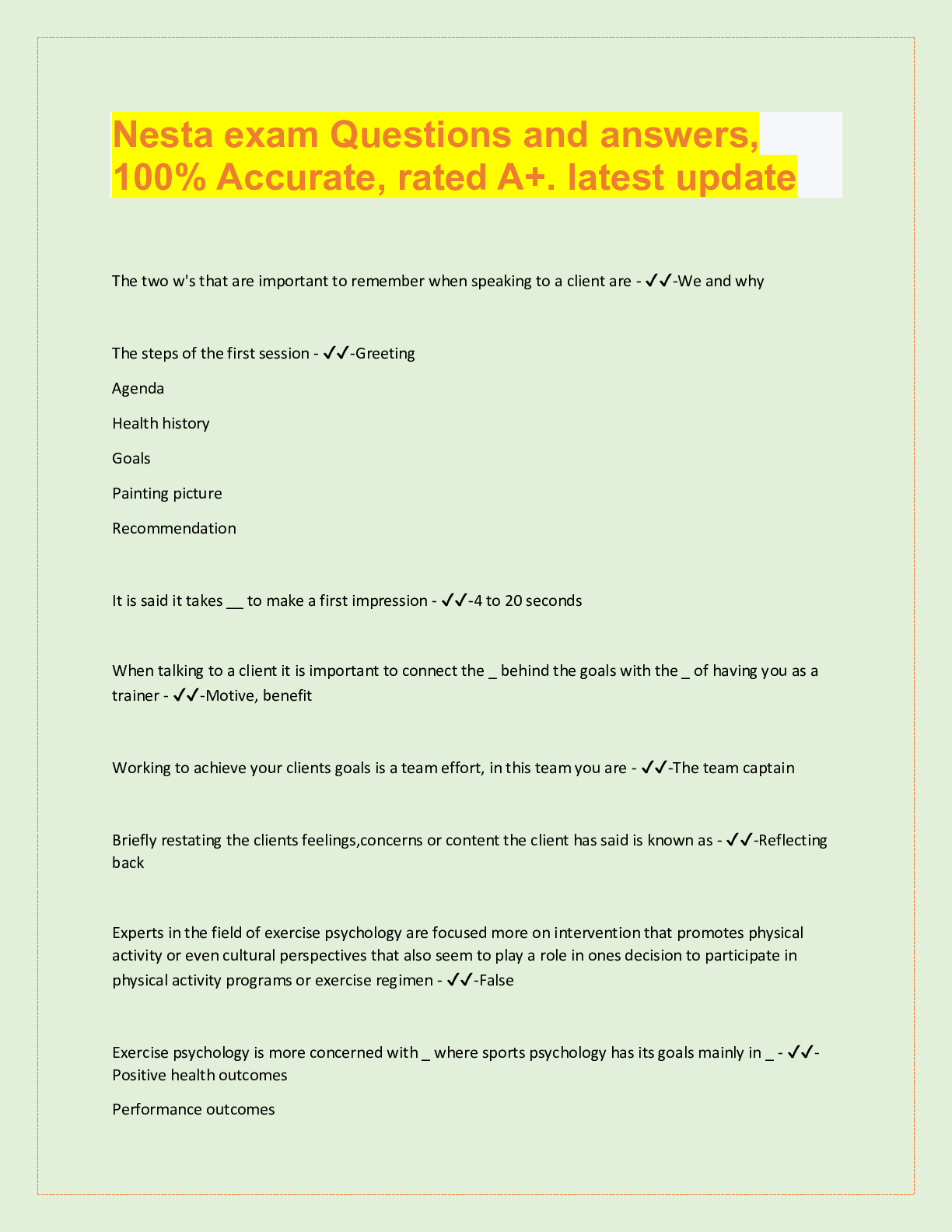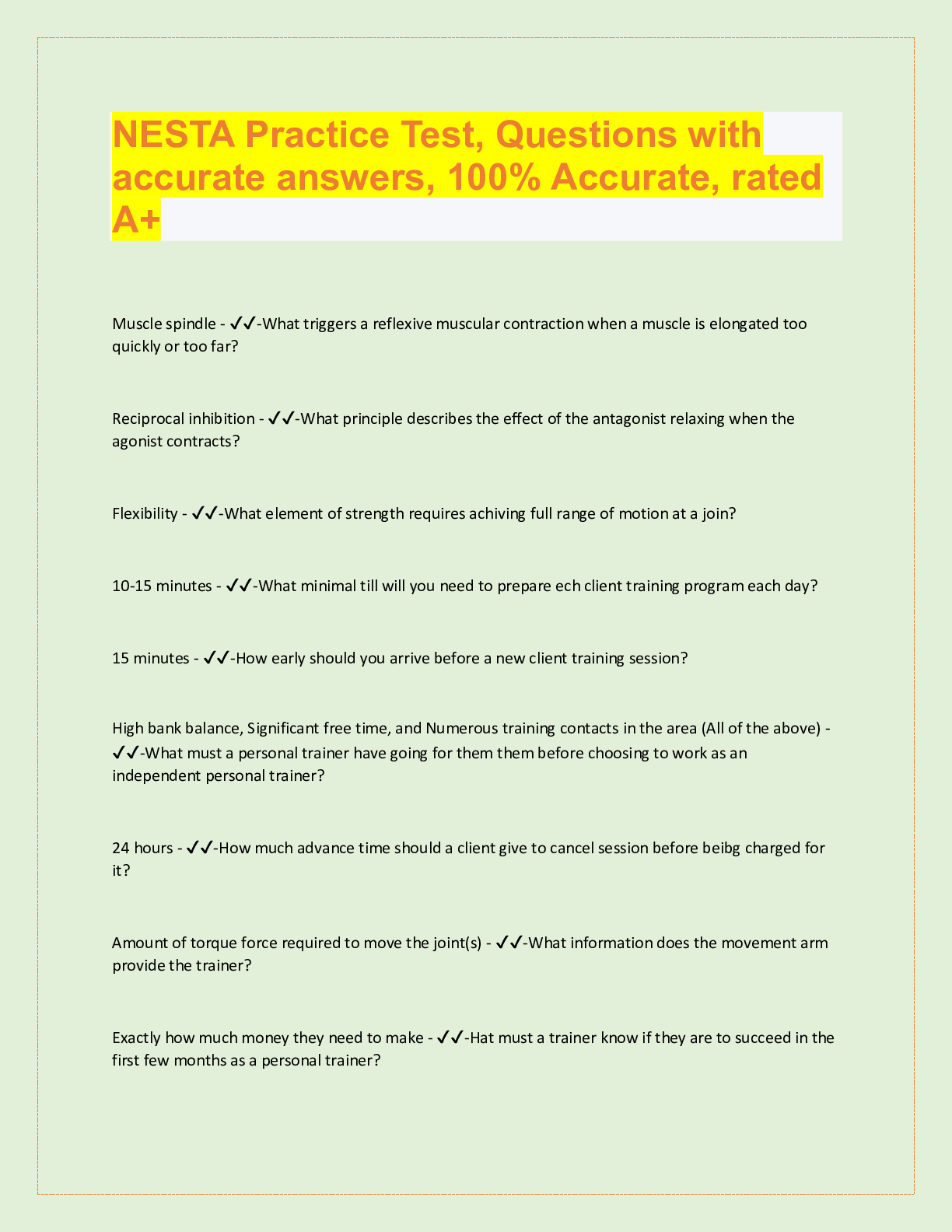 *NURSING> QUESTIONS & ANSWERS > NESTA PERSONAL TRAINING, Top exam Questions with accurate answers, rated A+ (All)