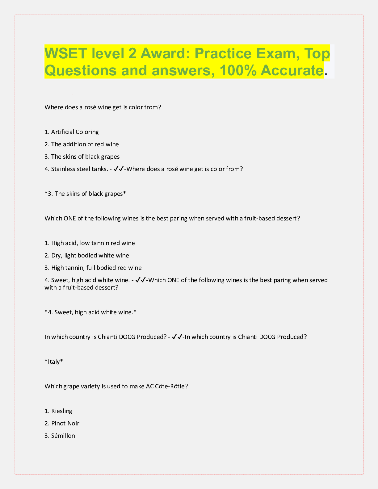 Food and Nutrition> QUESTIONS & ANSWERS > WSET Level 2 in Wines, Exam Questions and answers, 100% Accurate, rated A+ (All)