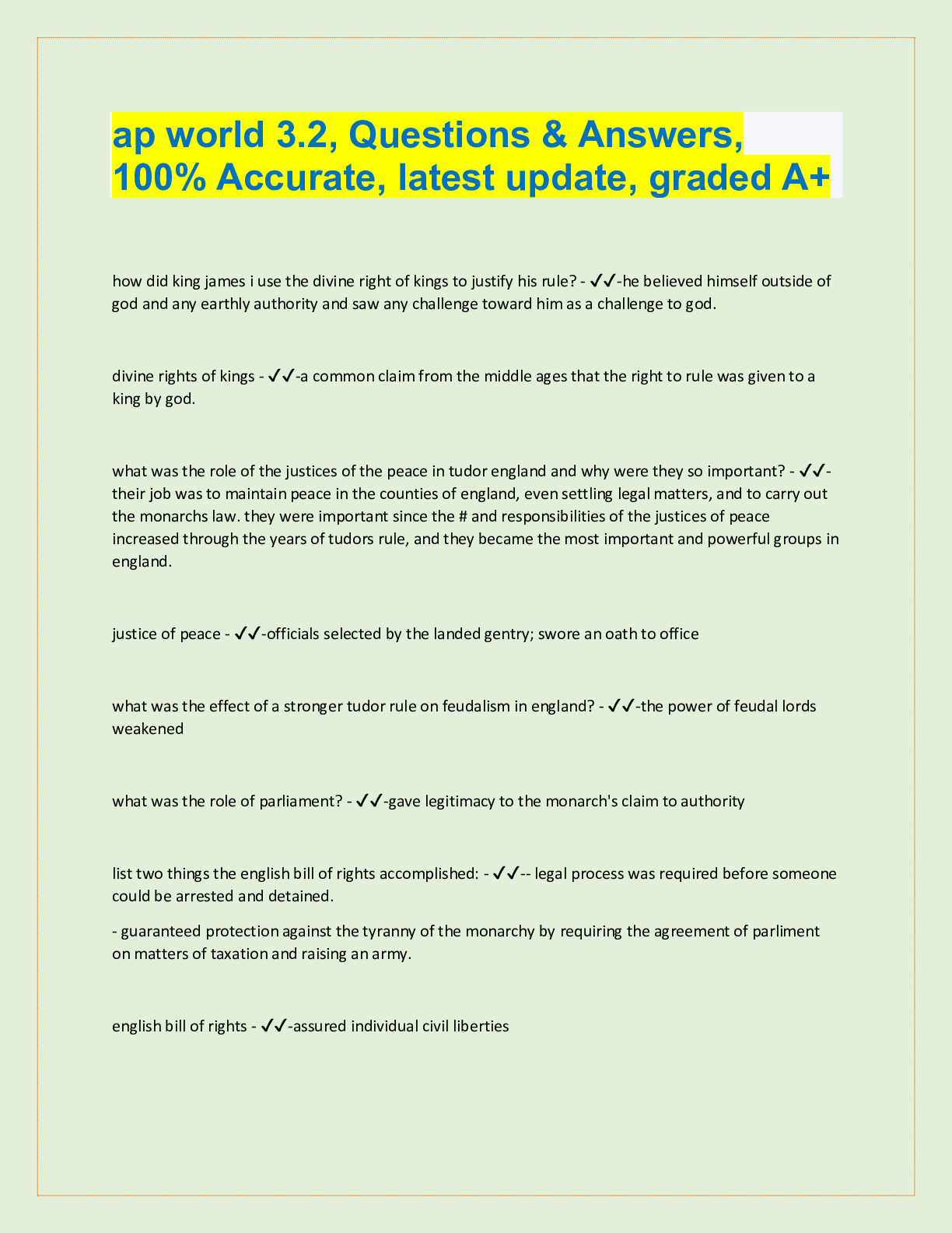AP World History Exam Study Guide Questions and answers, 100% Accurate, graded A+. 25 VERSIONS, APPROVED... [Show More]