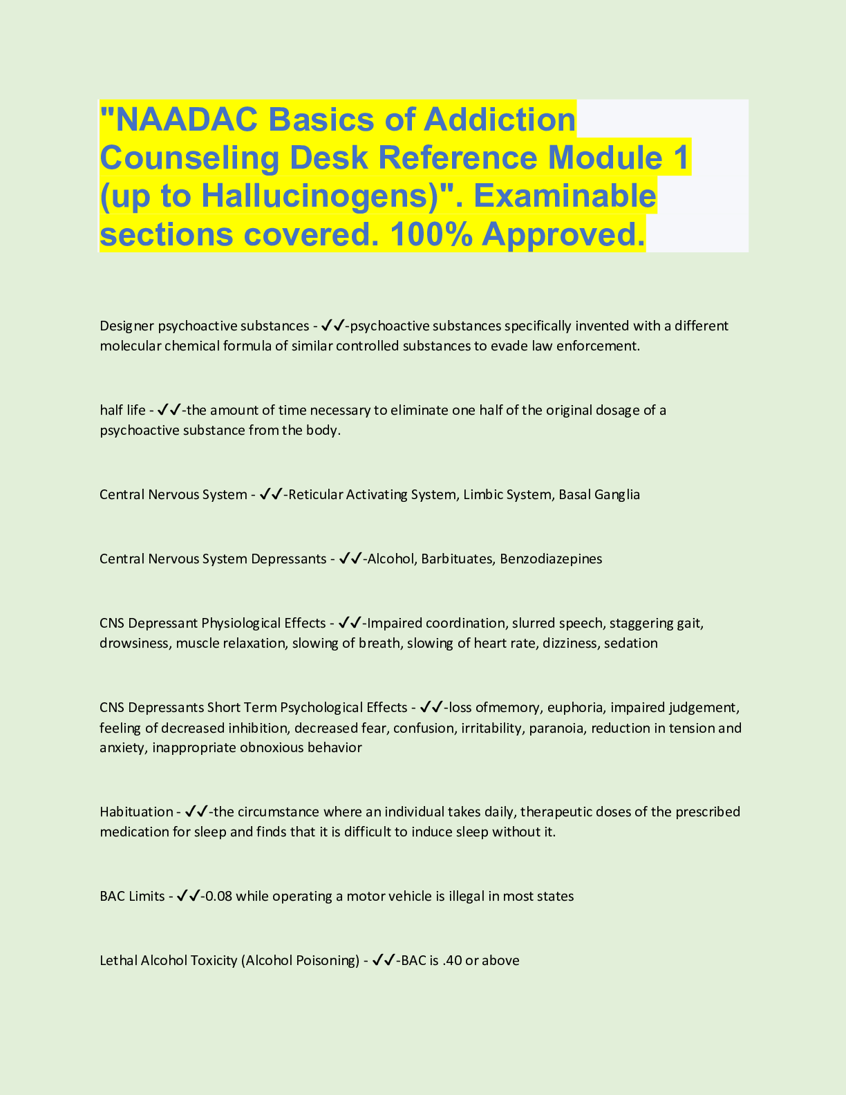 "NAADAC Basics of Addiction Counseling Desk Reference Module 1 (up to Hallucinogens)". Examinable sections covered. 100% Approved. Designer psychoactive substances - ✔✔-psychoactive substances...