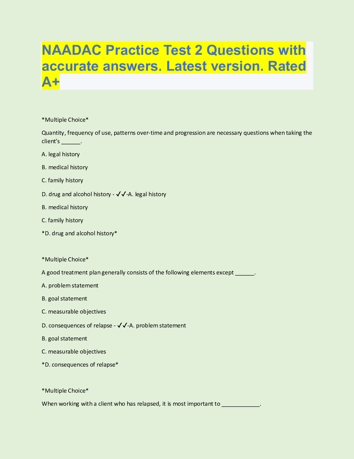 Social Sciences> QUESTIONS & ANSWERS > NAADAC Practice Test 2 - Updated Version. Questions with accurate answers, rated A (All)