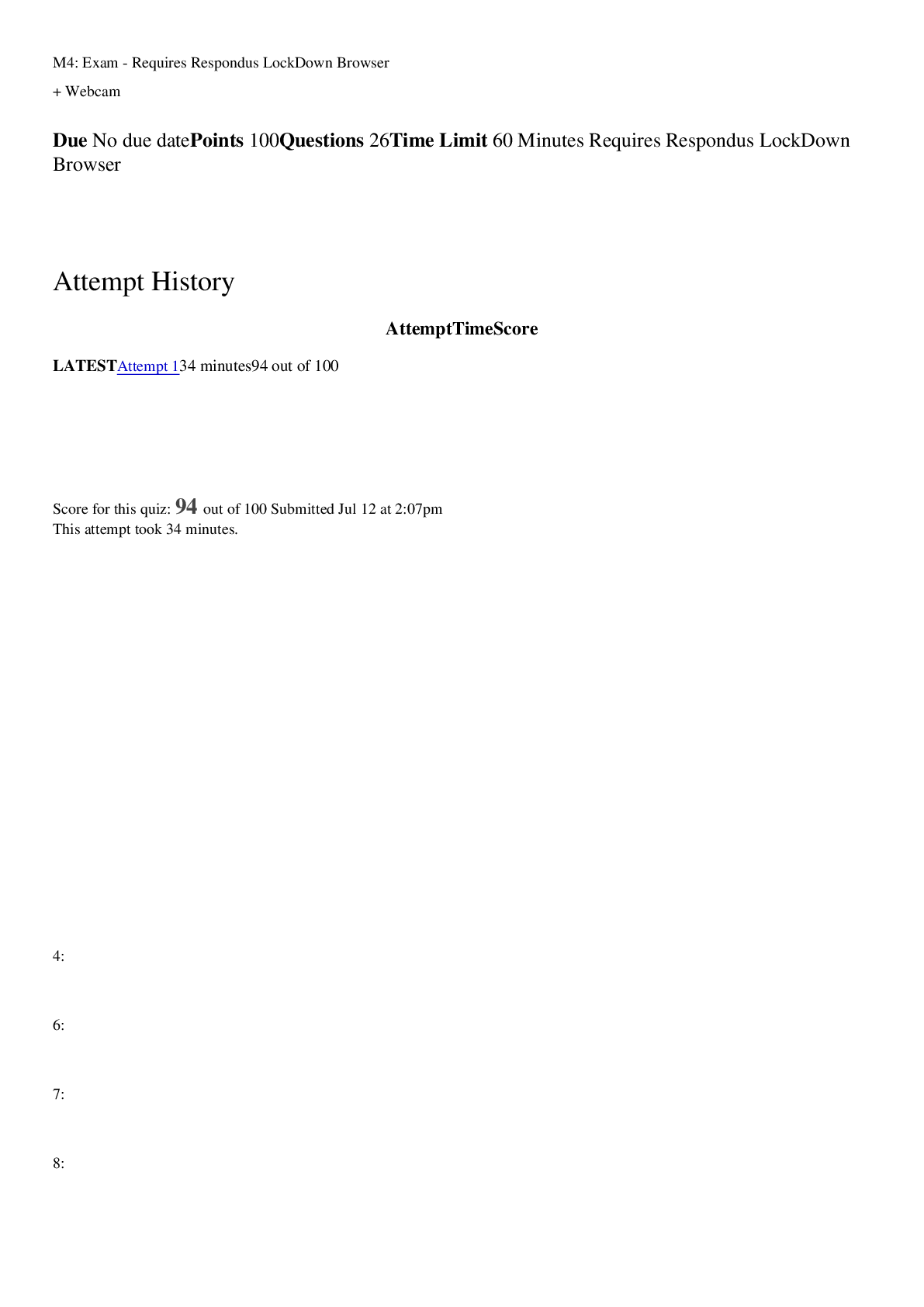 M4: Exam- Requires Respondus LockDown Browser Question 1 0 / 2 pts Which of the following statements is TRUE concerning the function of bones? Flat bones are long and thin, such as the ulna. Long bone...