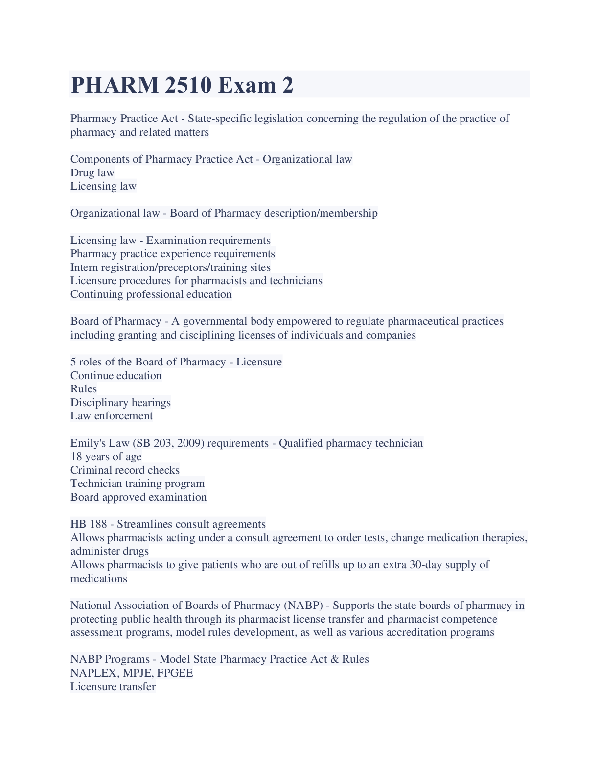 PHARM 2510 Exam 2 Latest Updates