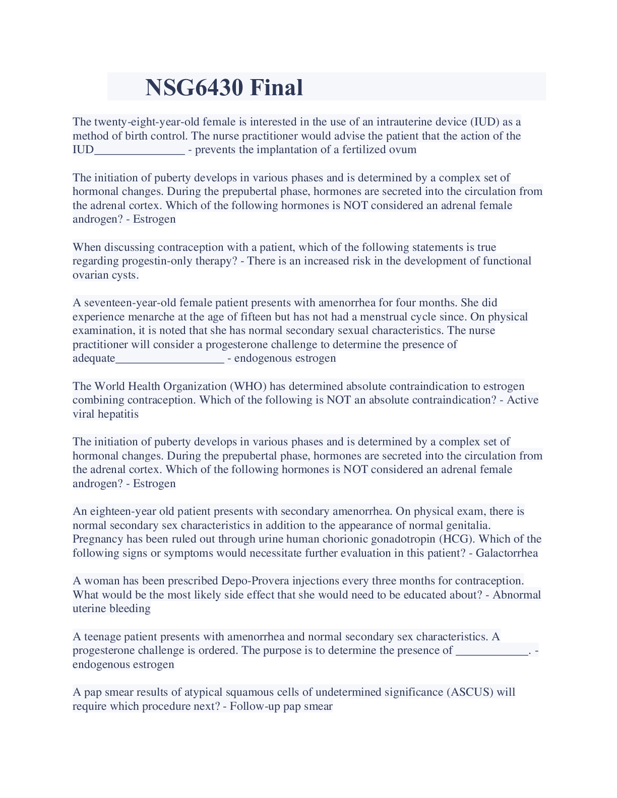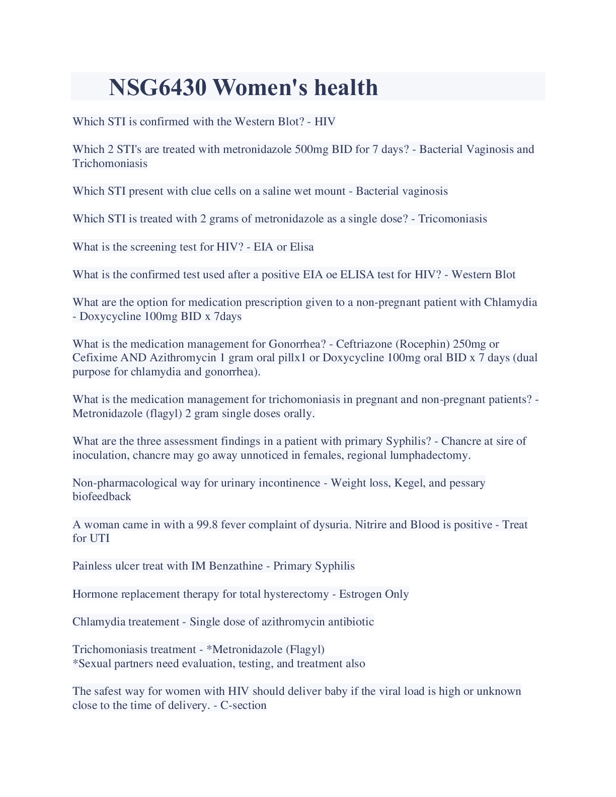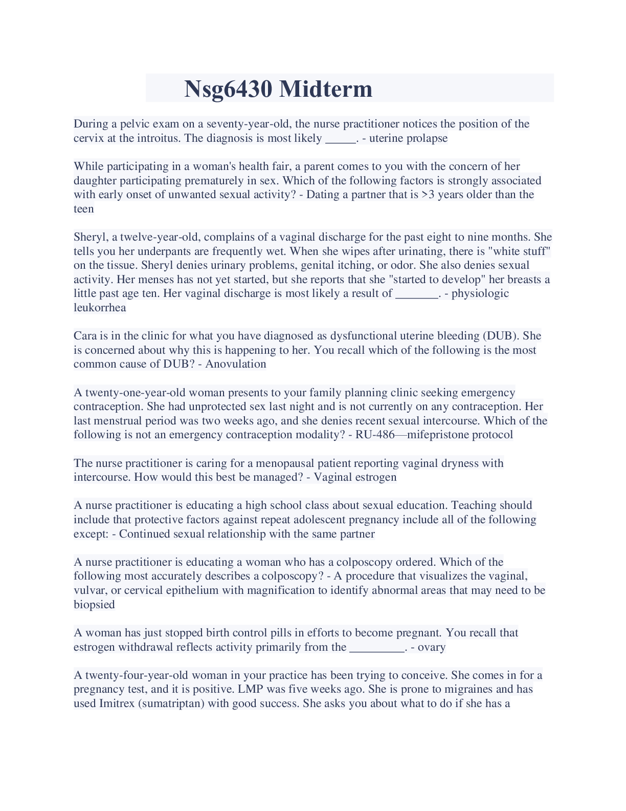 Health Care> EXAM > NSG6430 Women's health Questions And Answers Latest Updates (All)